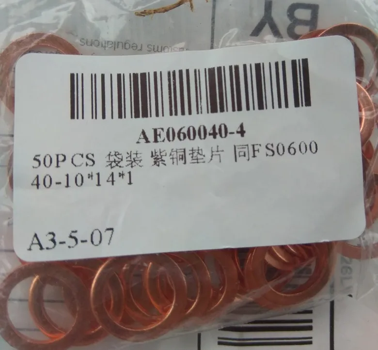 Прокладка медная, 10 х14х1 мм, 2050 шт.