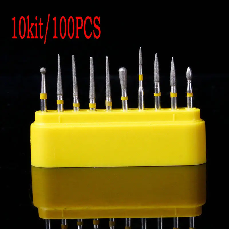 100 шт.10 комплектов зубные Алмазные Боры для зубов, фарфор, керамика, композитная полировка 1,6 мм