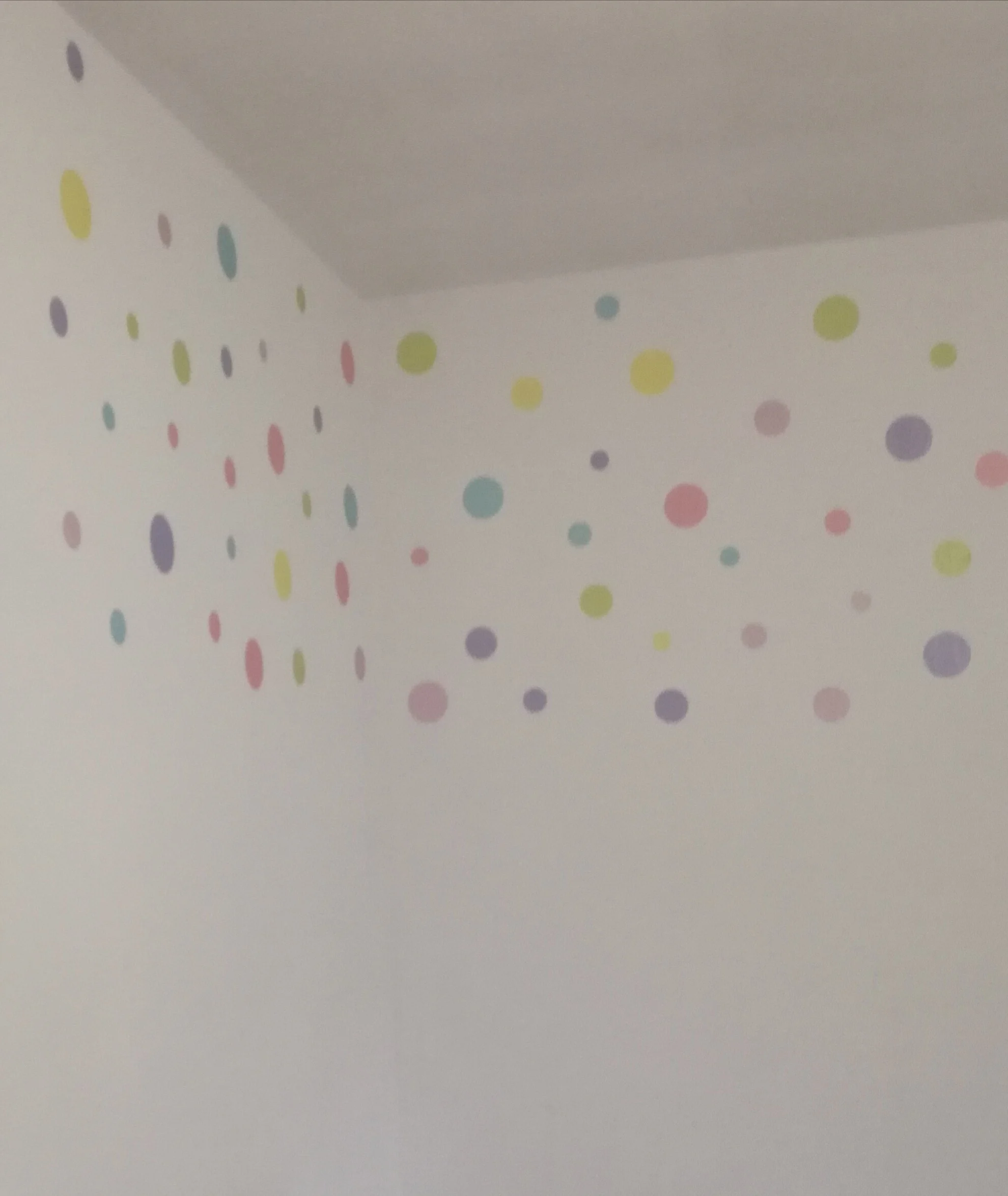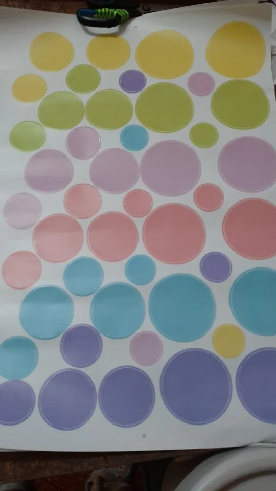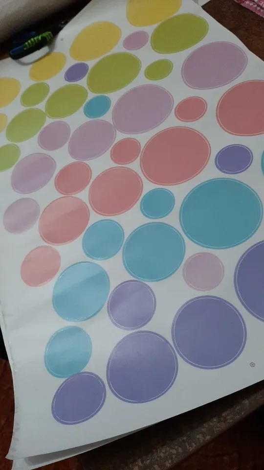 Это мой второй заказ - просто не хватила на всю стену как планировали Заказала 9.11 и пришла посылка 29.11 За это ставлю 5 ⭐⭐⭐⭐⭐ Поэтому не верю продам, которые растягивают получение аосылки на 3 месяца!!! Кружочки планировали на детскую, запах совсем легкий, быстро выветриваемый Очень яркие и красивые. Вылаживаю фрагменты стены