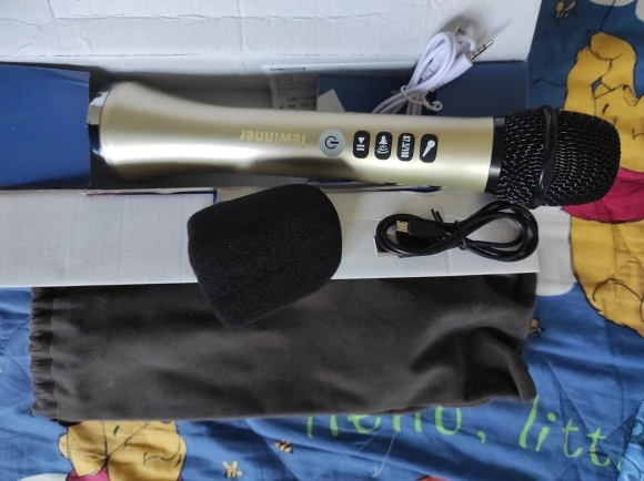 Товар пришел быстро и очень хорошо упакован (я выбрал подарочную упаковку). Микрофон изысканный, но звук не такой четкий. Функция Радио имеет задержку, поэтому я не хотел использовать эту функцию. В любом случае, Bluetooth работает идеально, и у нас так много веселья, пение и смех с этим гаджетом. Я рекомендую его.