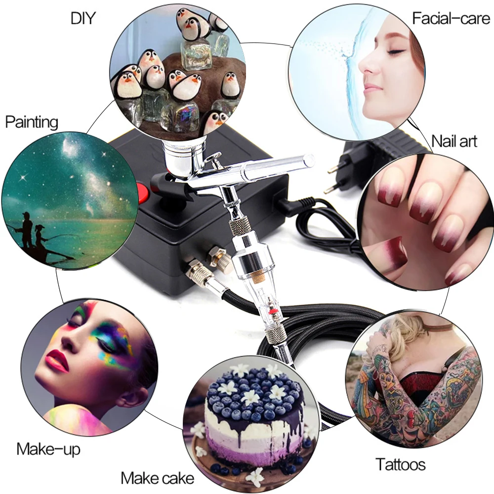 Аэрограф Двойного действия, с компрессором, распылителем 0,3 мм, рисунок пистолета, набор для маникюра кисть для смазывания торта