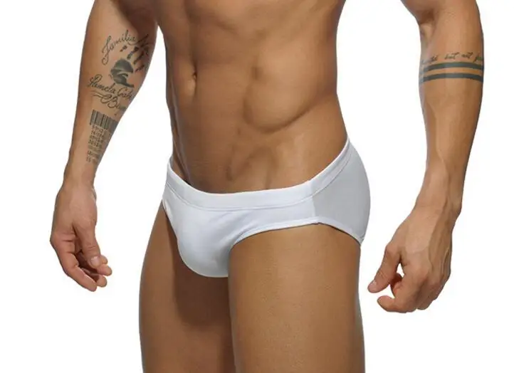 Бесплатная доставка, мужские белые плавки с низкой талией, обтягивающие белые плавки, быстросохнущие сексуальные плавки, супер эластичные