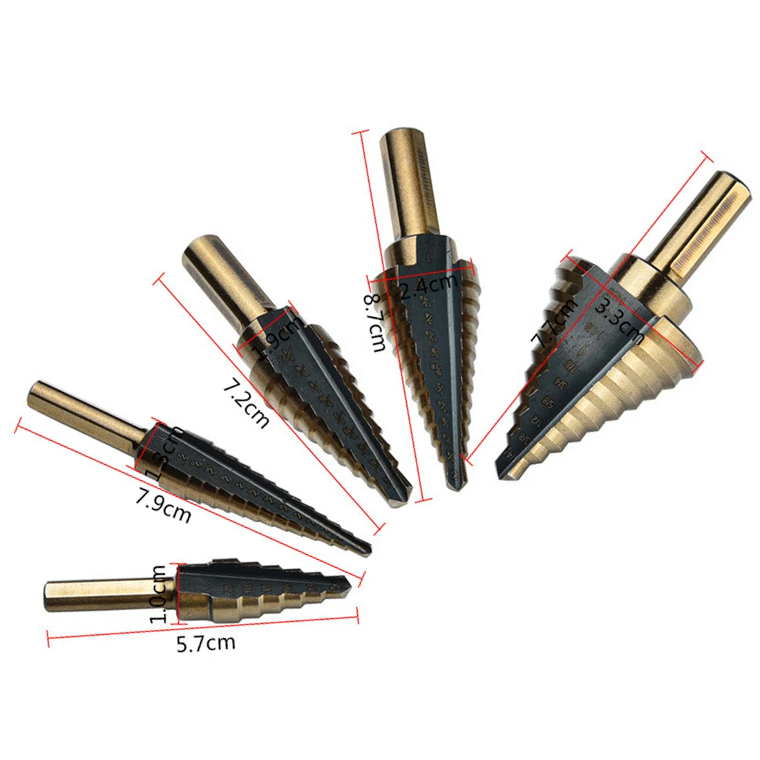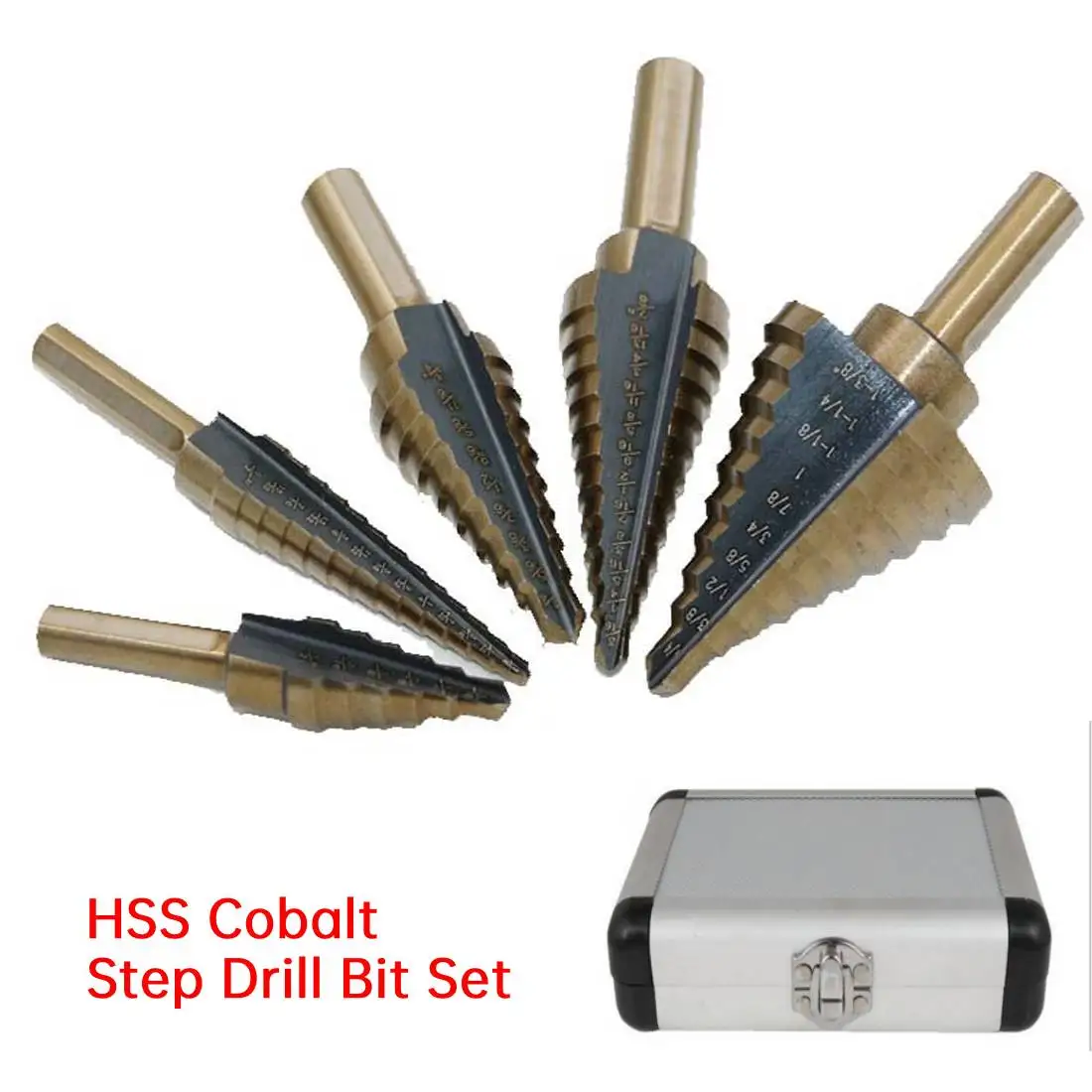 Набор ступенчатых Сверл из быстрорежущей стали и кобальта, 5 шт., для нескольких отверстий, 50 размеров, для электроинструмента, сверло для отверстий с алюминиевым чехлом, Прямая поставка