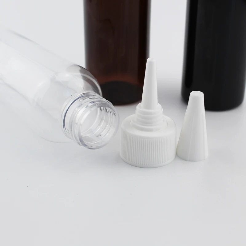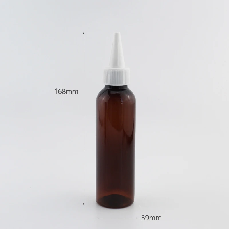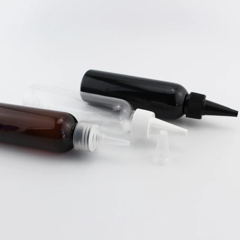 Емкость: 120 мл Размер: 168x39 мм Материал: ПЭТ + пластик Цвет: прозрачный/коричневый/черный флакон с белым/прозрачным/черным остроконечным горлышком