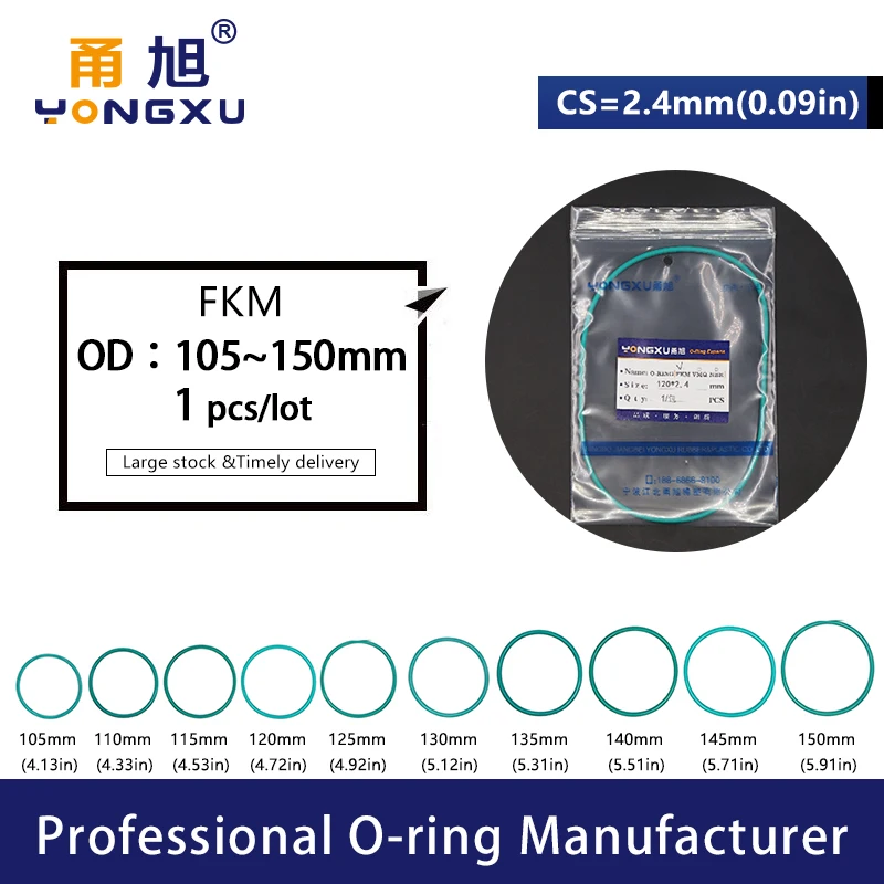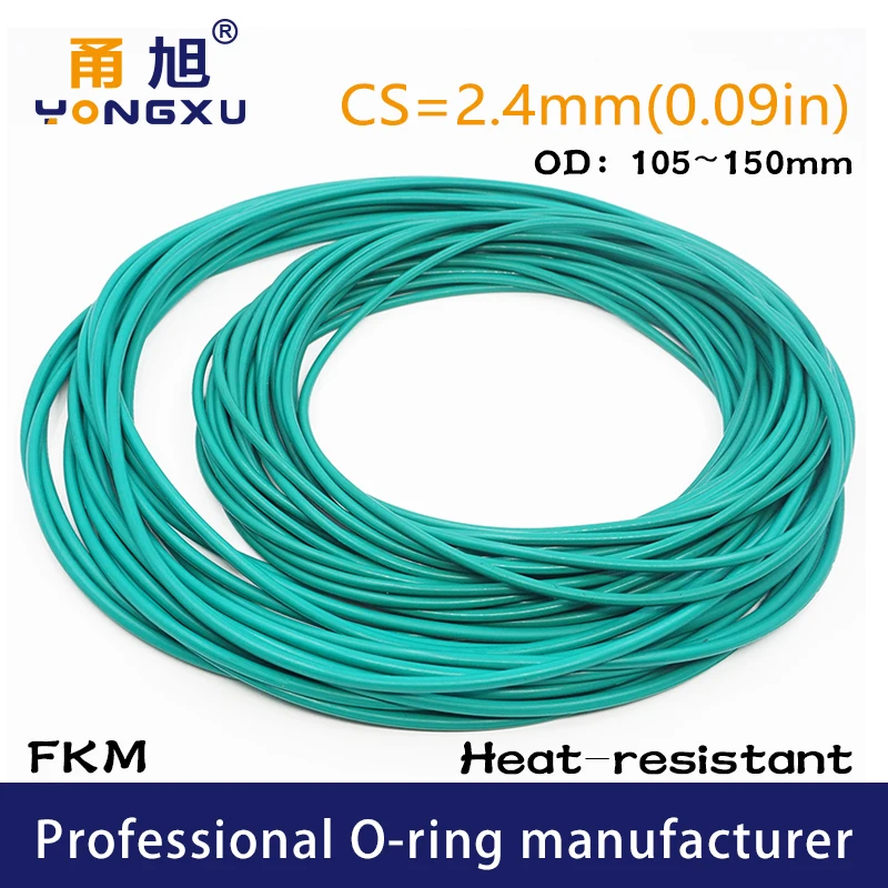 Зеленые фторрезиновые уплотнительные кольца FKM CS2.4mm OD105110115120125130135140*145150 мм ORings, уплотнительные кольца, герметизация топлива