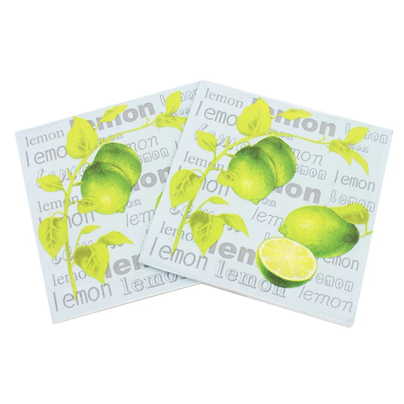 33 см, 20 шт., бумажные салфетки с фруктами и зеленым лимоном