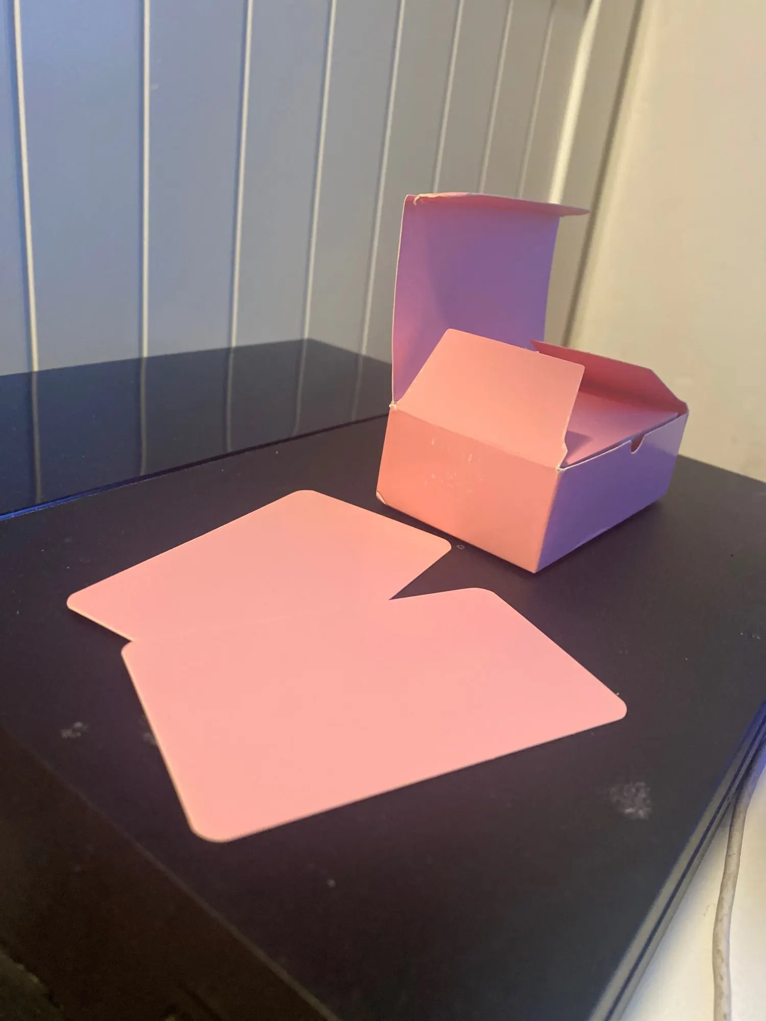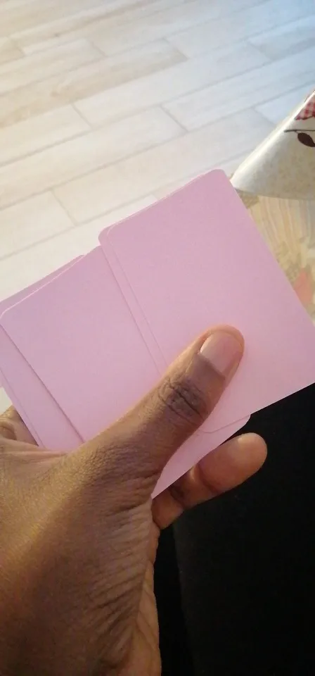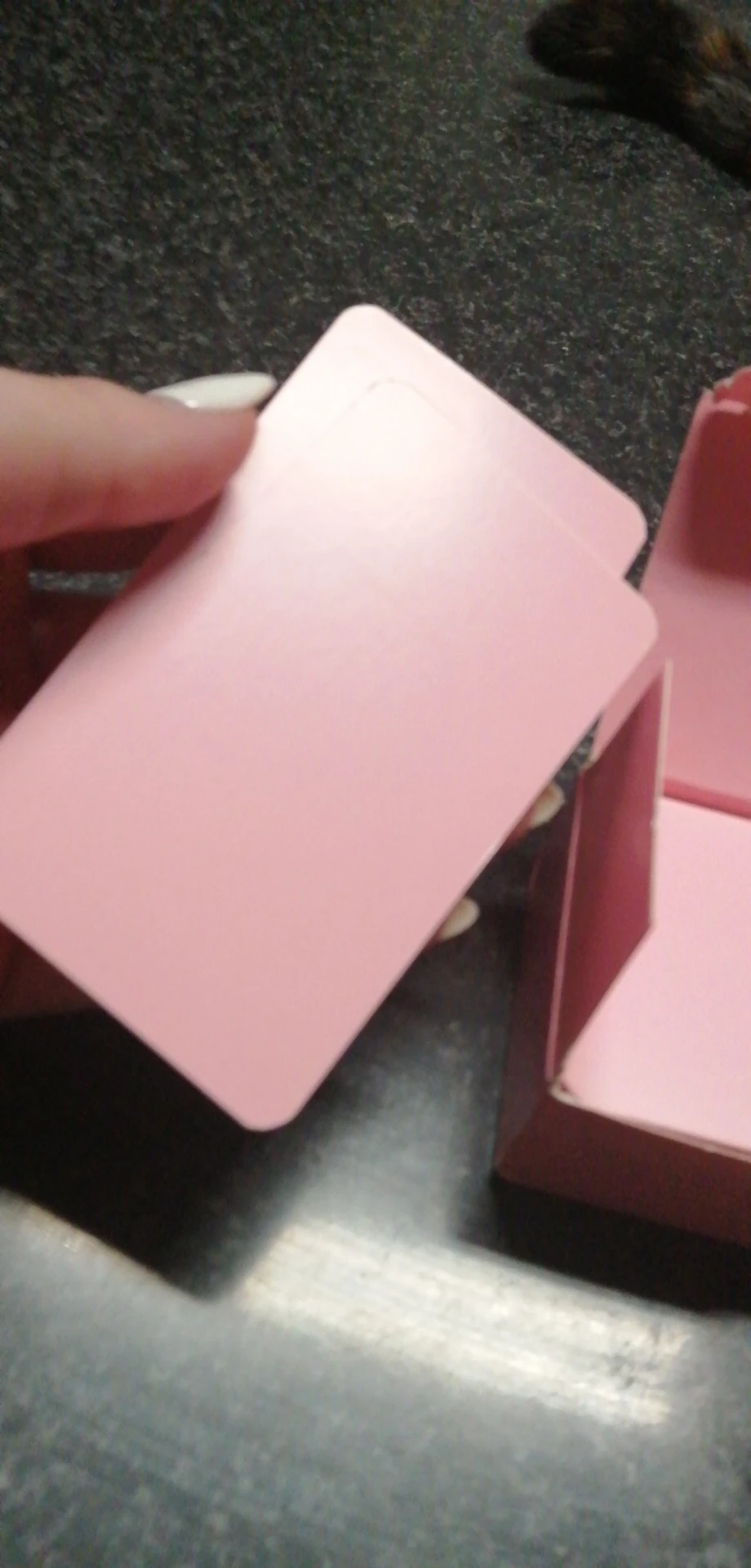 приятный цвет, одна сторона глянцевая, другая бумажная. купила с целью нарисовать колоду карт (если кто захочет заняться тем же, то этот формат меньше чем классические карты). ещё не пробовала рисовать на них, но описанию товар соответствует, коробка целая без повреждений