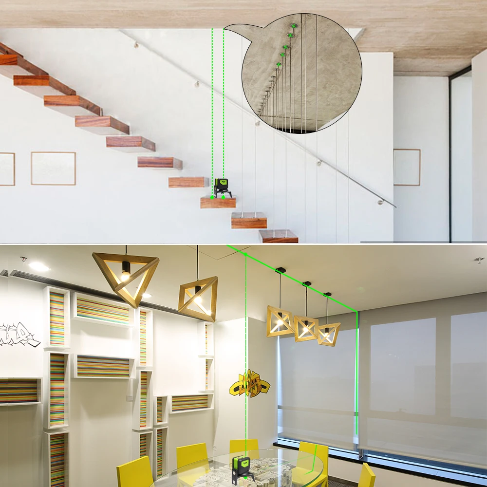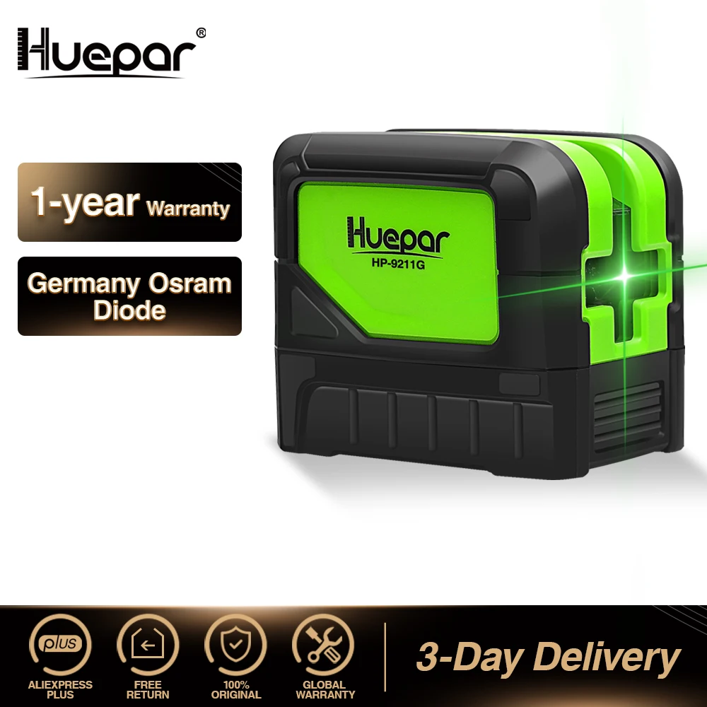 Инструмент 2 в 1: раскладывайте Два зеленых луча комбинацией верхних и нижних точек от пола до потолка, Расширенный Угол может достигать до 180 градусов. Huepar 9211G сочетает в себе все особенности 9011 г плюс две точки.