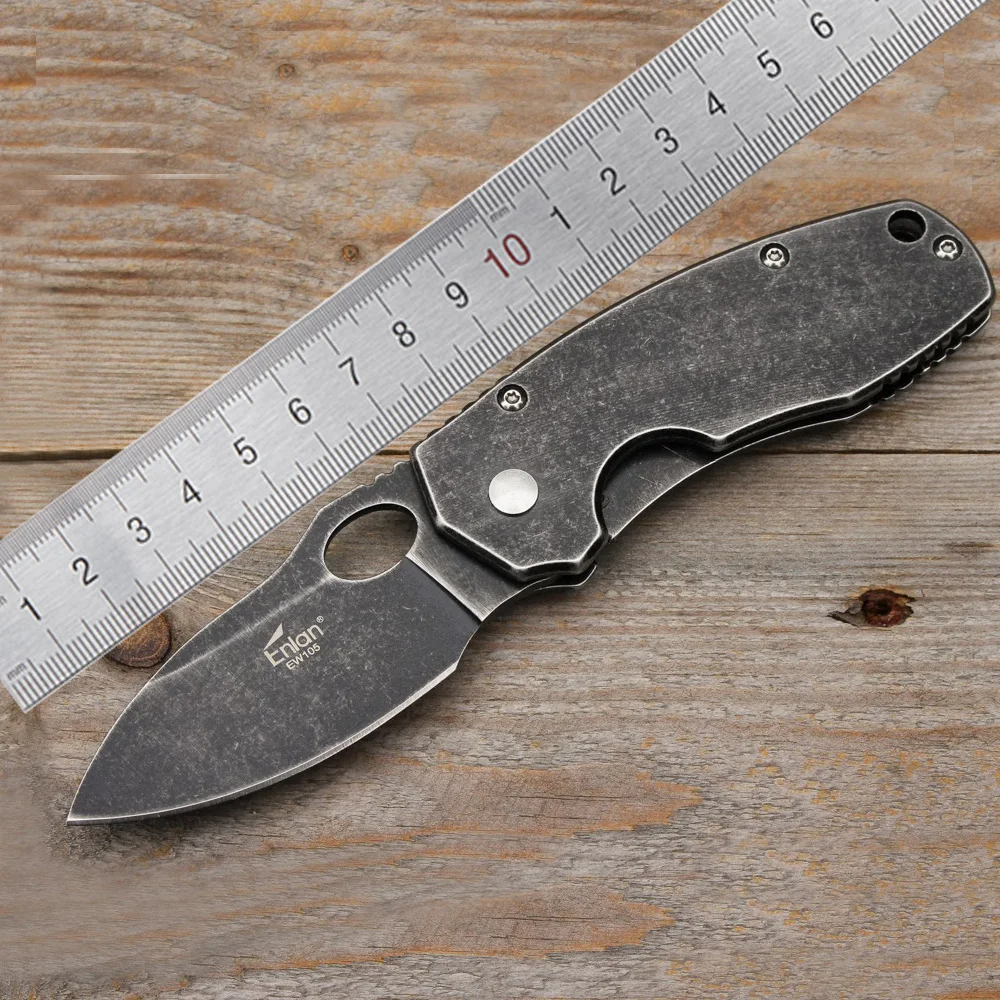 Складной нож Enlan EW105, карманный Клинок с лезвием 8Cr13Mov, цельностальная ручка, для повседневного использования, кемпинга, охоты, выживания