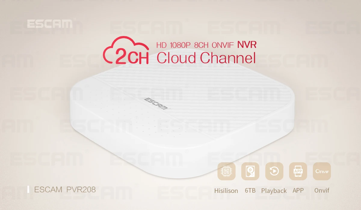ESCAM PVR208 1080P 8 + 2CH ONVIF MINI NVR с 2-канальным облачным каналом для IP-камеры