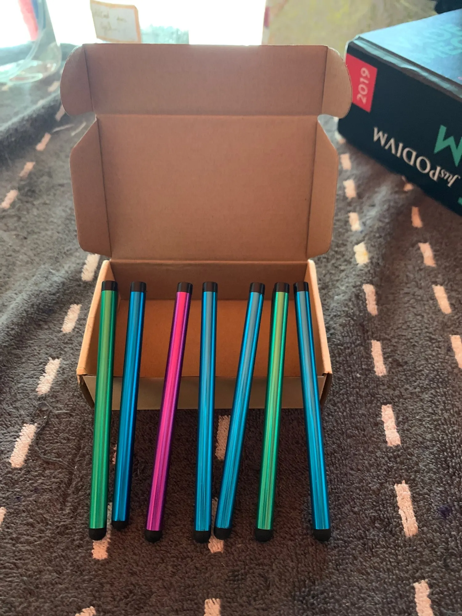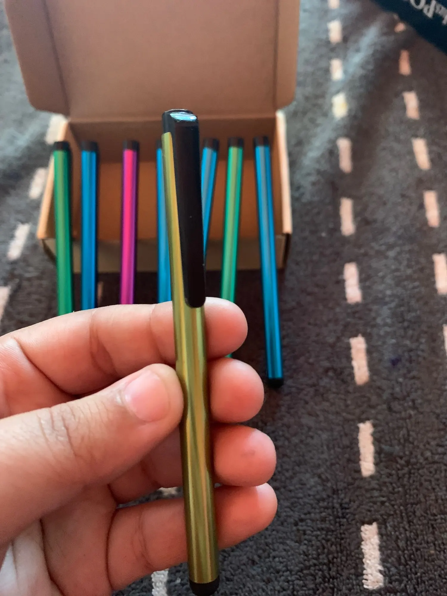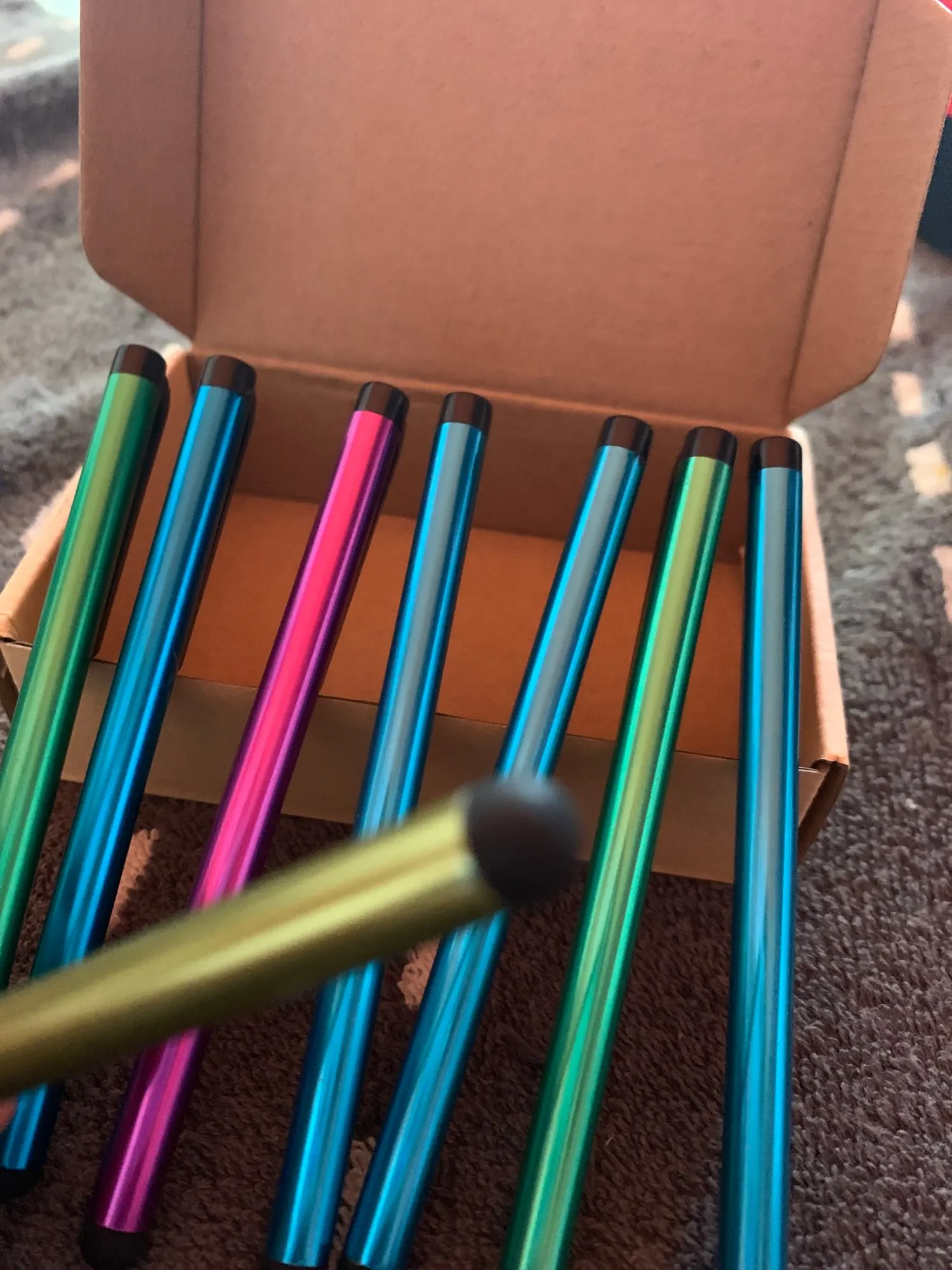 Товар прибыл очень быстро. Попросите продавца отправить ручки в разных цветах, по два типа. Но, только что пришел синий, желтый, а остальные были зеленые и розовые. По всей видимости, цвета отправляются случайным образом. Качество товара не плохое. Конечно, это не на том же уровне профессионального стилуса, но разбивает ветку. Сумма, уплаченная в день рождения, стоит того.