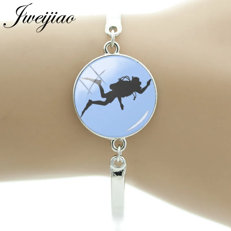 JWEIJIAO Новый 2018 Дайвинг акваланга силуэт браслет плавание с цепочкой браслеты стеклянные драгоценные камни купол ювелирные изделия Di07