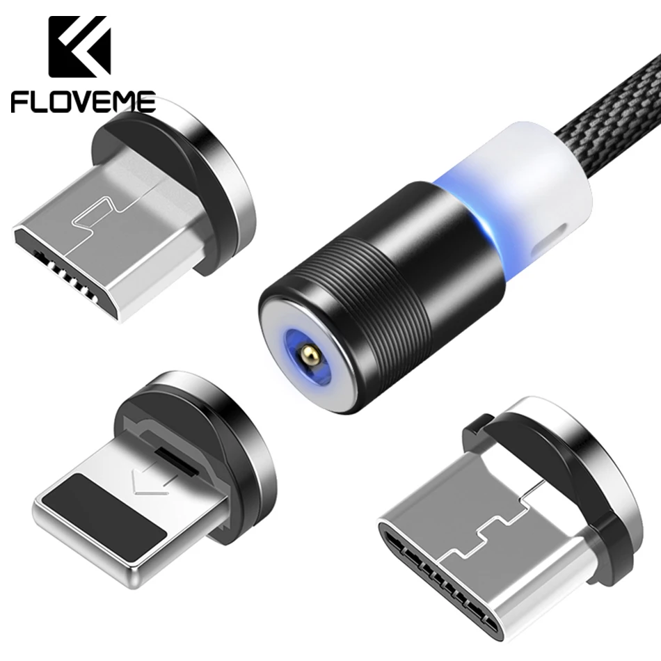 Магнитный кабель FLOVEME USB Type-C, нейлоновый, 1 м, со светодиодной подсветкой, для Xiaomi Mi 8, A1, Redmi Note 5, кабель с подсветкой для iPhone, зарядное устройство