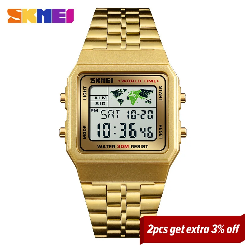 SKMEI Luxuly мужские наручные часы золото золотой цифровые часы Нержавеющаясталь Лидирующий бренд Relogio Masculino Saatler мужской часы 1338