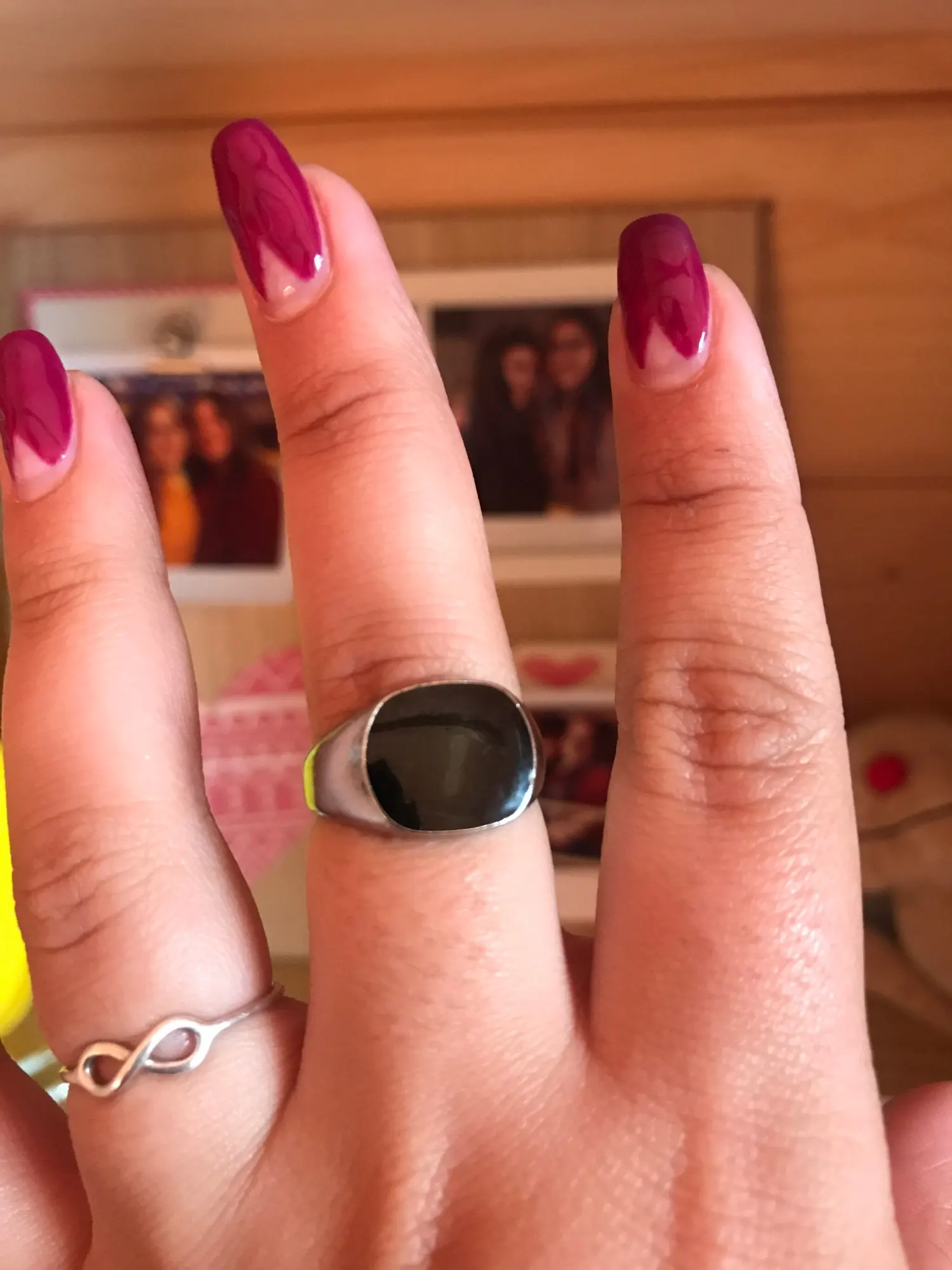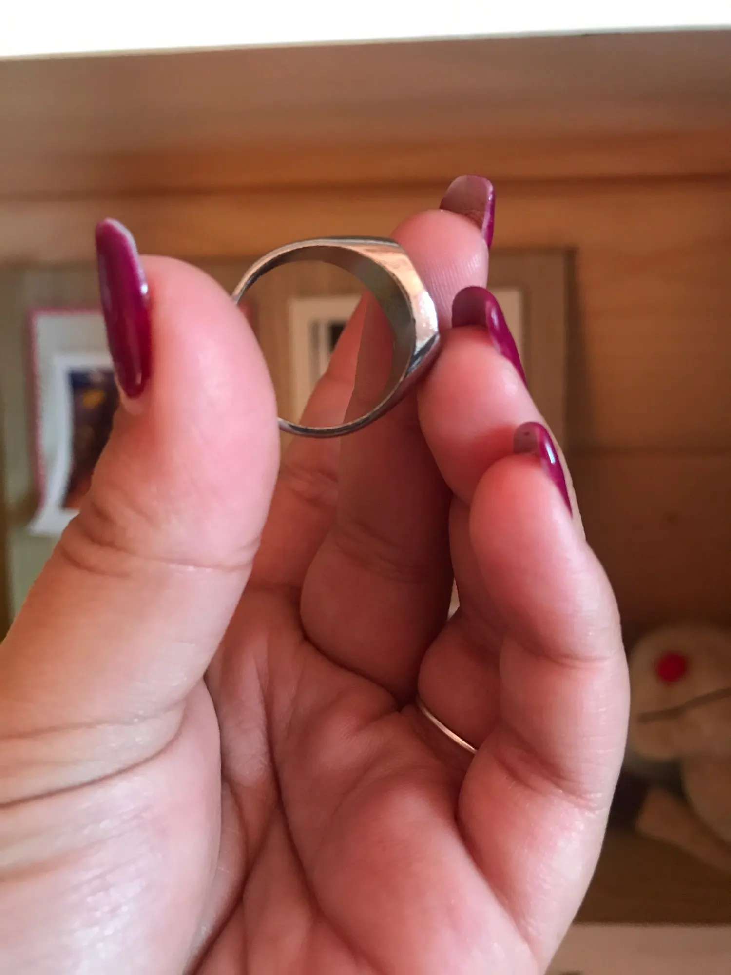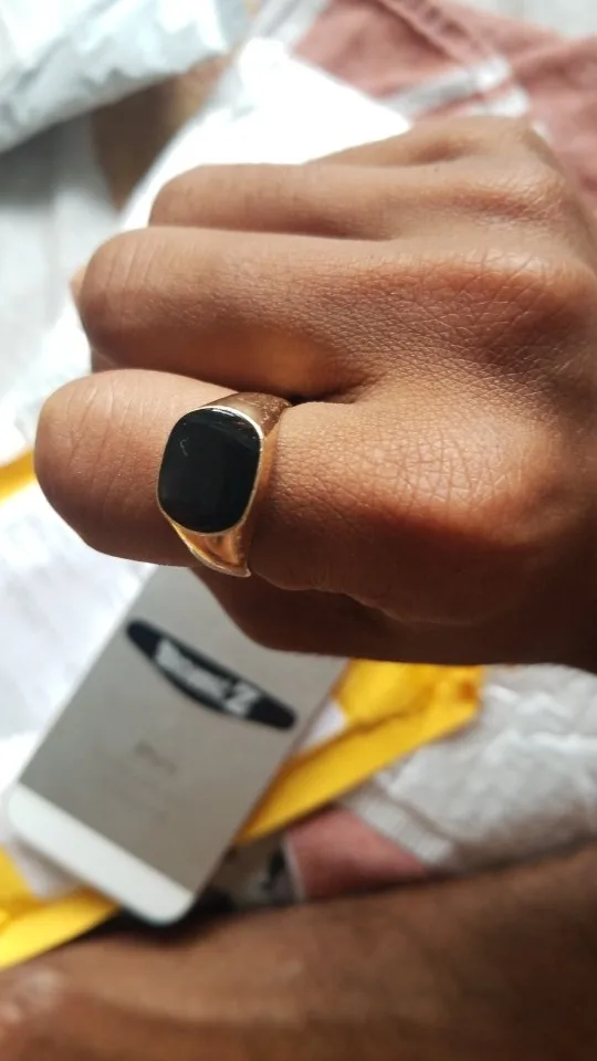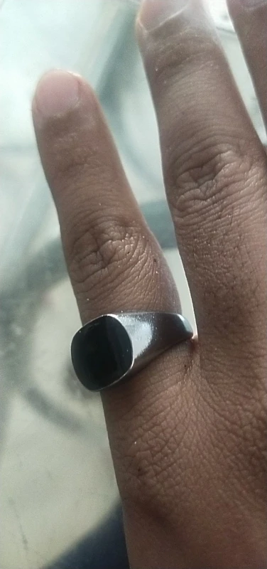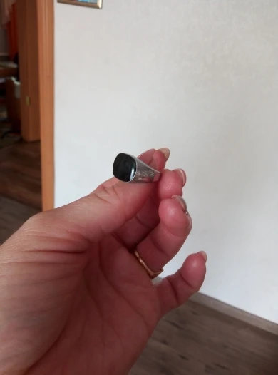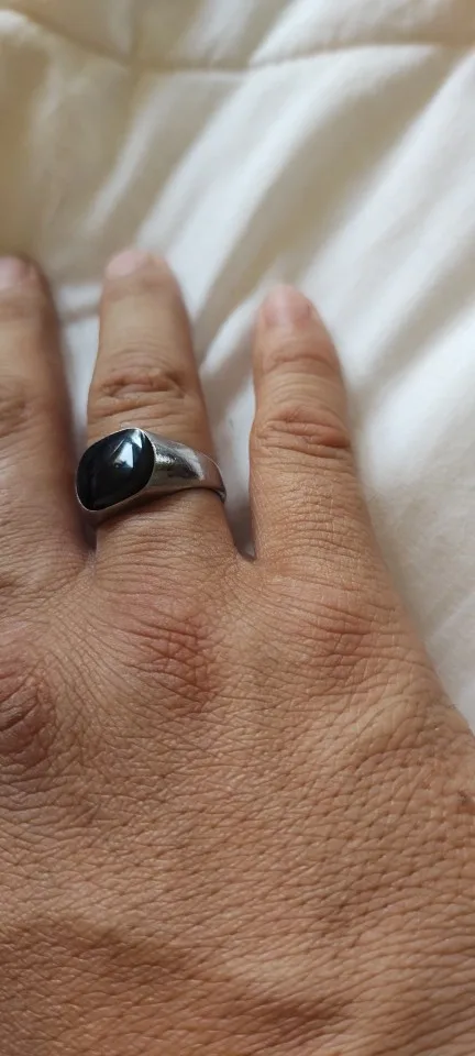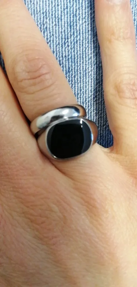 La bague n'a rien a voir avec la photo... Photo trompeuse !!! Beaucoup plus petite, rectangulaire et le metal est de très mauvaise qualité.