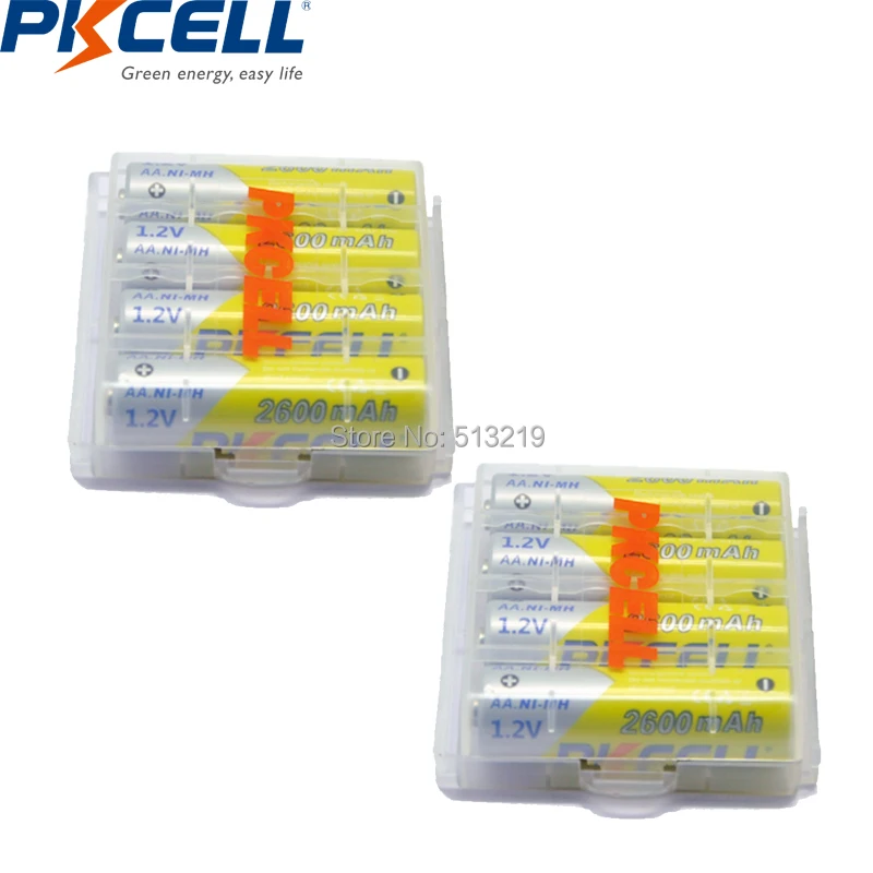 8 шт. 2 упаковки PKCELL aa 2300mAh до 2600mAh AA NIMH аккумуляторна...