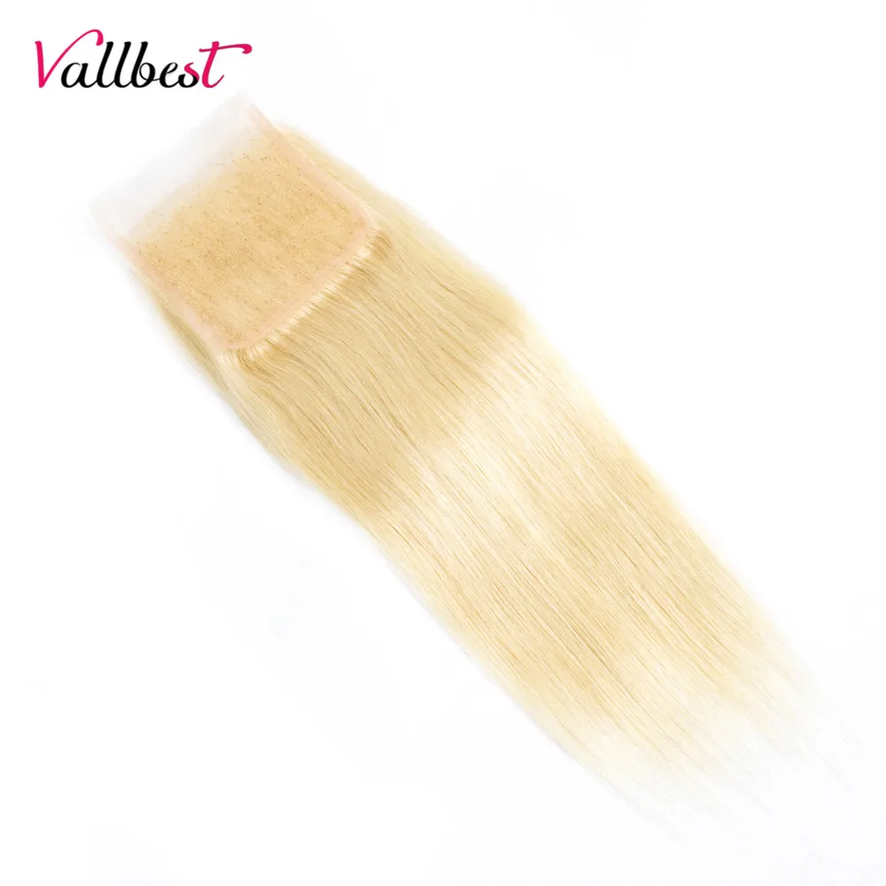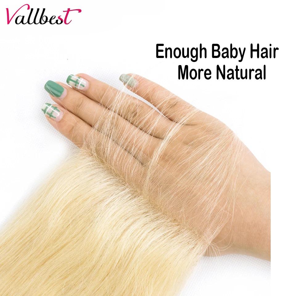 613 светлые прямые волосы Vallbest, пряди с закрытием, малазийские человеческие волосы, пряди с кружевной застежкой, Детские волосы Remy