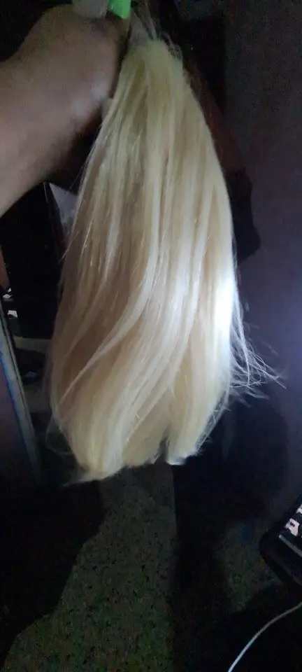 Очень доволен этими волосами, прибыл вовремя без задержек. Это изображение волос после Погиба пепельно-блонд, отбеливающий узлы застежки и погибающий корни коричневого цвета. Волосы только немного линяют, я обязательно куплю их снова.