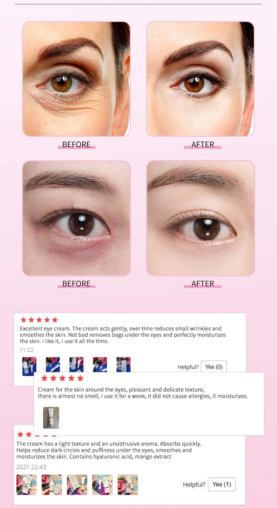 Очень хорошо увлажняет кожу вокруг глаз, приятный запах, очень долга доставка, но это вина таможни. Спасибо продавцу, рекомендую!