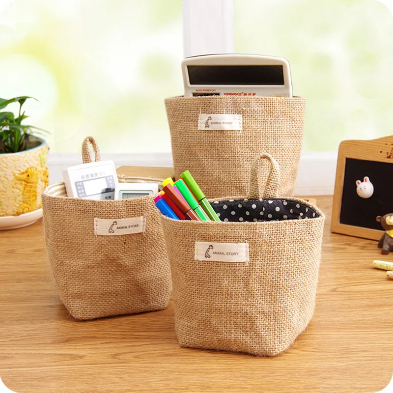 Настольная корзина для хранения из хлопка и льна, коробка для хранения мелочей, маленькая милая корзина для хранения, компактные мешки для хранения, органайзер для макияжа
