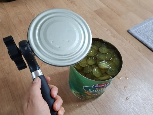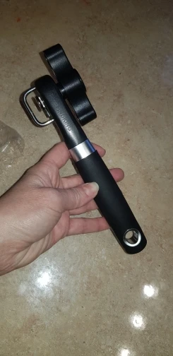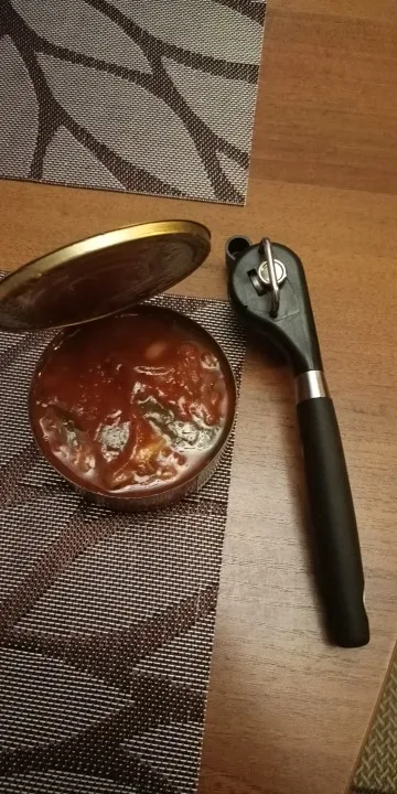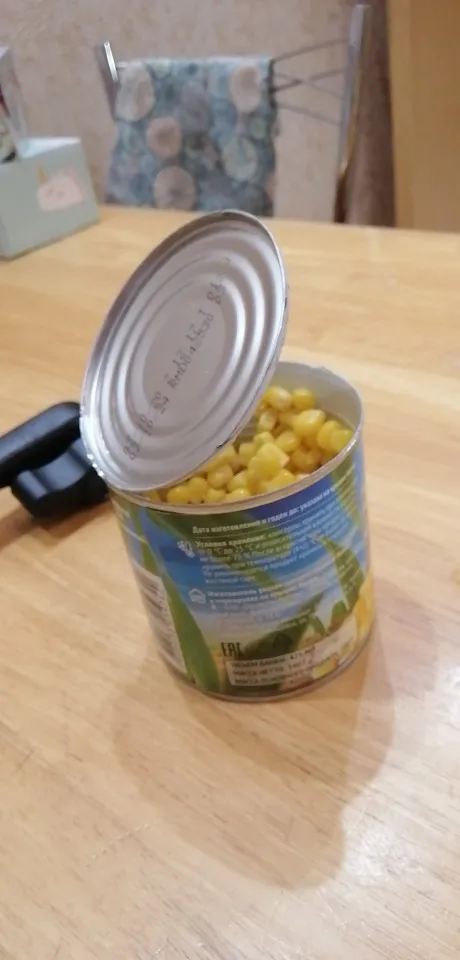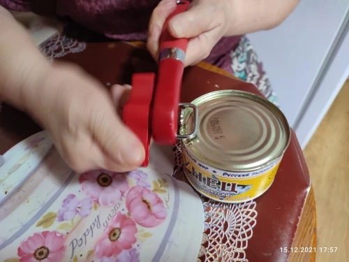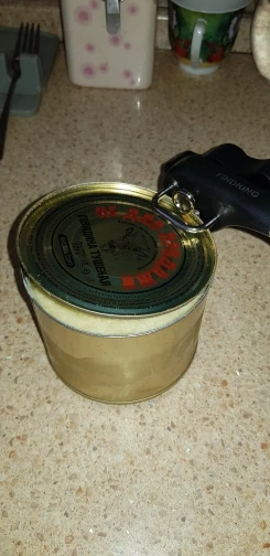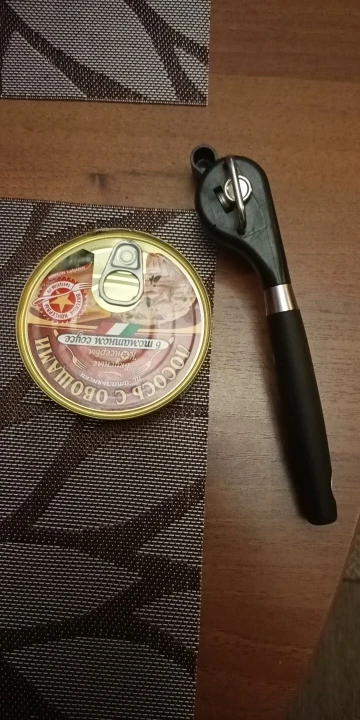 Товар соответствует описанию. Свои функции, выполняет. Обычную банку консервов (кукуруза, тушёнка и т.п.) открывает за два оборота по кругу банки. Крышка отделяется полностью. Край банки получается не острый, порезаться нельзя. Доставка быстрая.