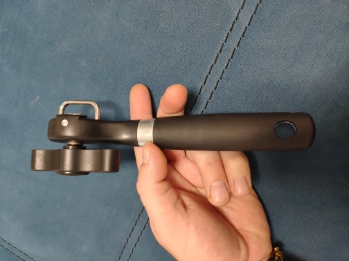 Хорошо сделана, ручка очень приятная на ощупь. Никаких заусенцев, все качественно и хорошо обработано. Что немного смутило, единственную банку, которая у меня была, открыла не полностью. Пришлось ножом поддеть крышку. Допускаю, что банка такая, может чуть замятая. Но вроде бы со старой открывалкой той же конструкции поначалу таких проблем не было, просто сейчас уже износилась. Нужно больше опыта в общем и гораздо больше банок