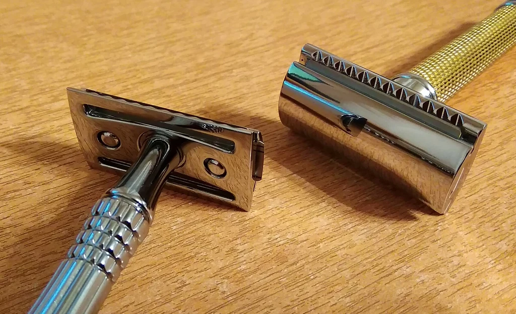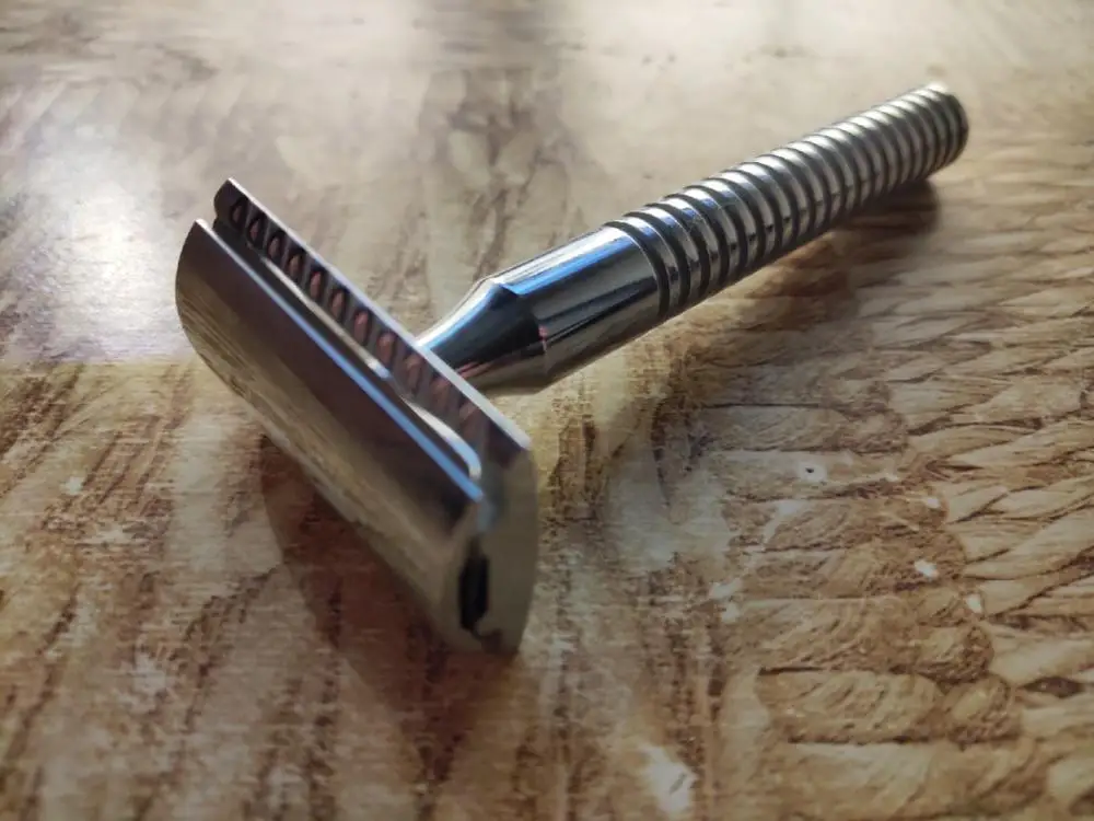 Безопасная бритвенная головка с зубчатым стержнем хромированного цвета, с двойной кромкой, без логотипа
