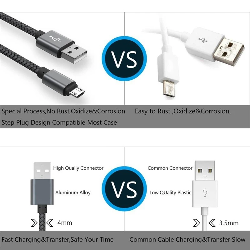 Микро USB нейлоновый плетеный кабель для быстрой зарядки для Samsung E7 E5 A7 A5 A3 J7 J5 2015/2016 Высокоскоростной микро USB кабель для синхронизации данныхХарактеристики:1. Разъем USB A.2. Разъем USB Micro B.3. Скорость передачи данных USB 2,0 "" High Speed ", синхронизация данных между компьютером и вашим мобильным телефоном, КПК или планшетом.4. Передача файлов, контактной информации, электронных писем и встреч с вашего телефона заряжайте устройство с помощью usb-порта компьютера.5. Тип: Кабель Micro USB.6. Материал: Поликарбонат, металл, нейлоновое волокно.7. Цвет изделия: черный, серебристый, синий, красный, зеленый.8. Ток: макс. 2 А.