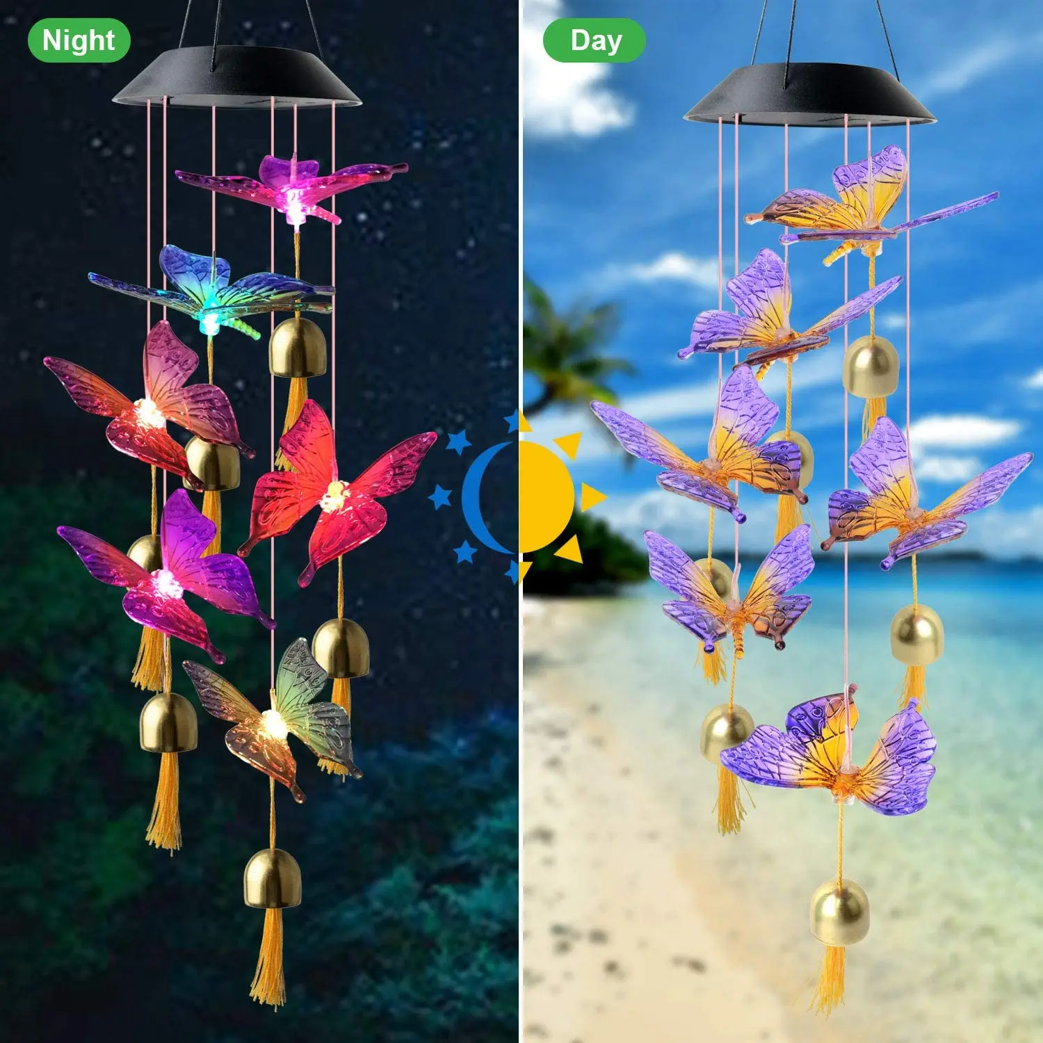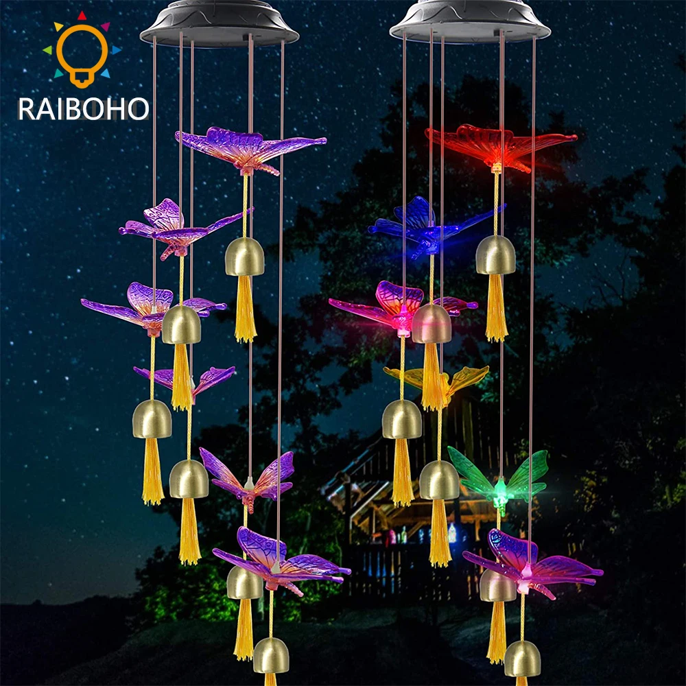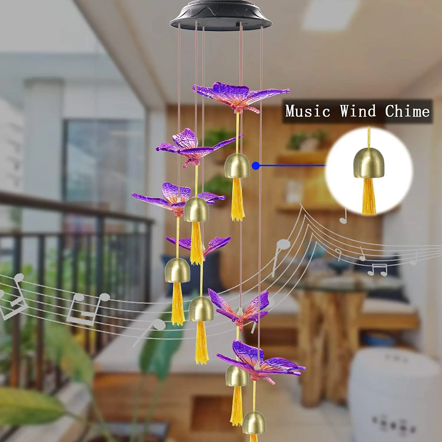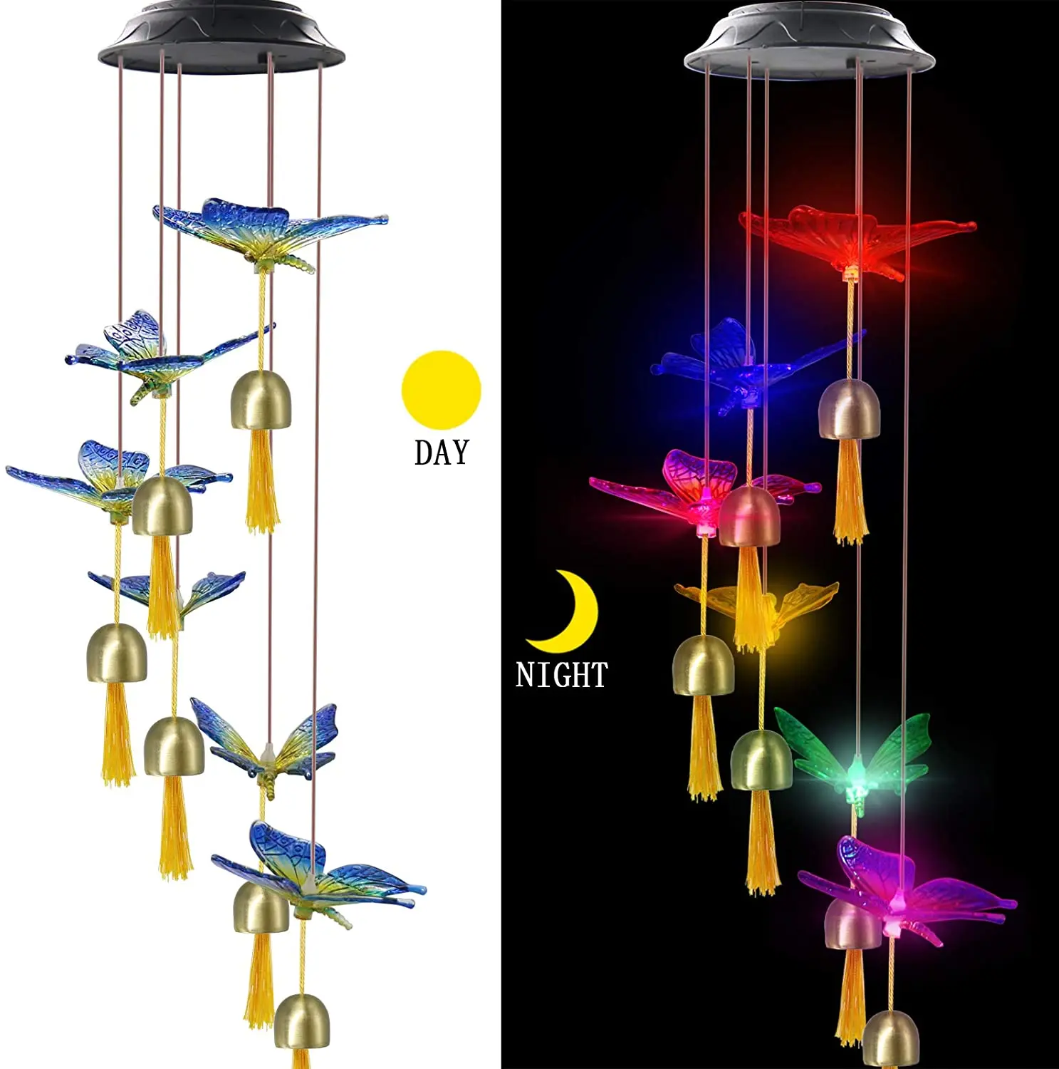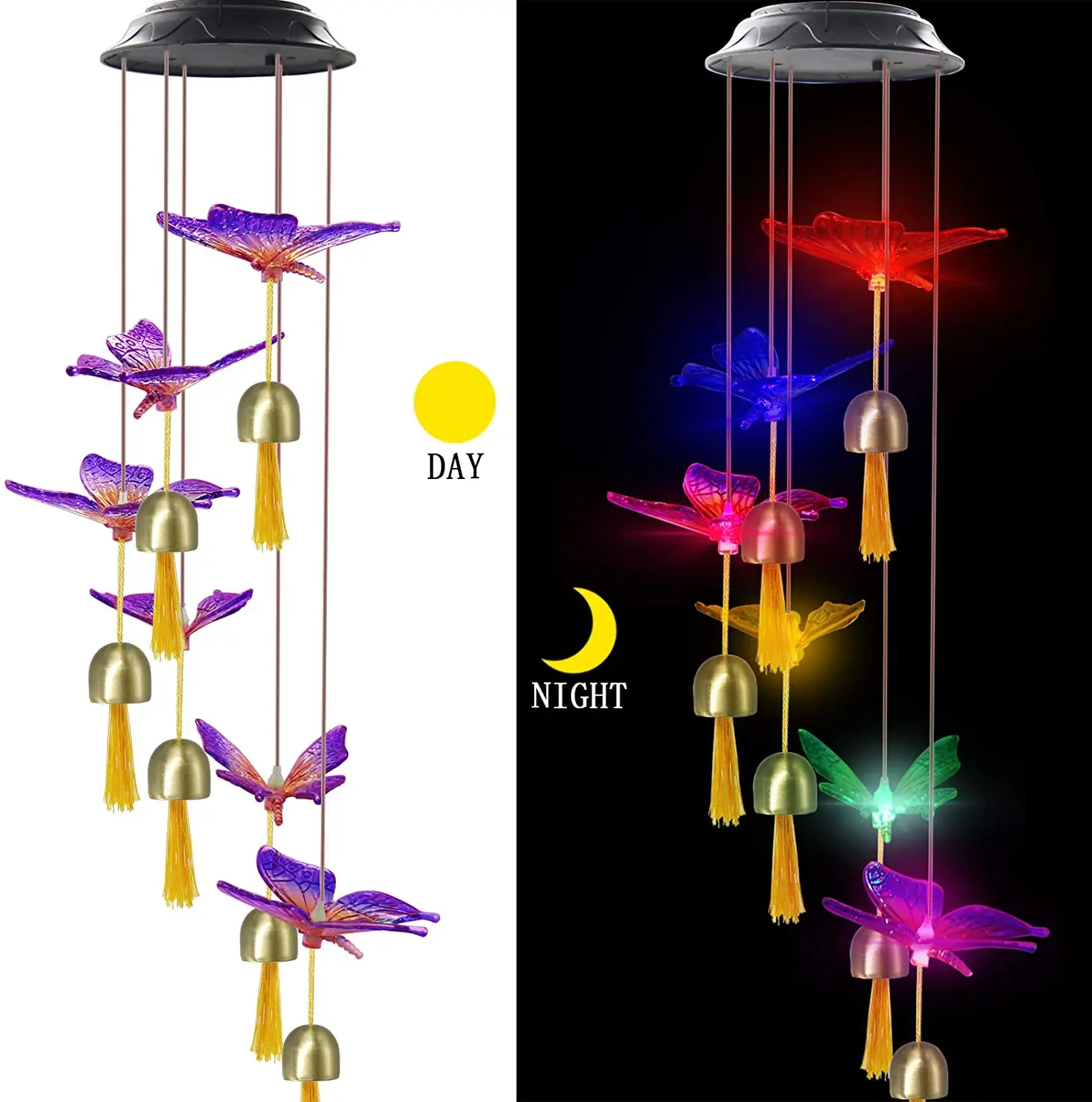 Обновленная Солнечная колокольчиков открытый Цвет изменение Водонепроницаемый подвесной светодиодный колокольчики с бабочками колокольчиков подарки для шланг для полива огорода, двора, вечерние