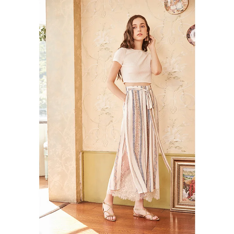 Женские широкие брюки ARTKA, шифоновые брюки с высокой талией, кружевными вставками и разрезами по бокам, KA15082X, на осень, 2018