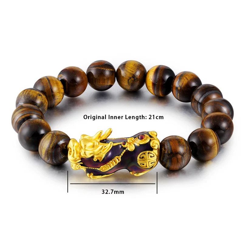 Натуральный мужской браслет из бисера тигровый глаз с храбрыми войсками, термохромные амулетные браслеты Pixiu, ювелирные изделия ручной работы