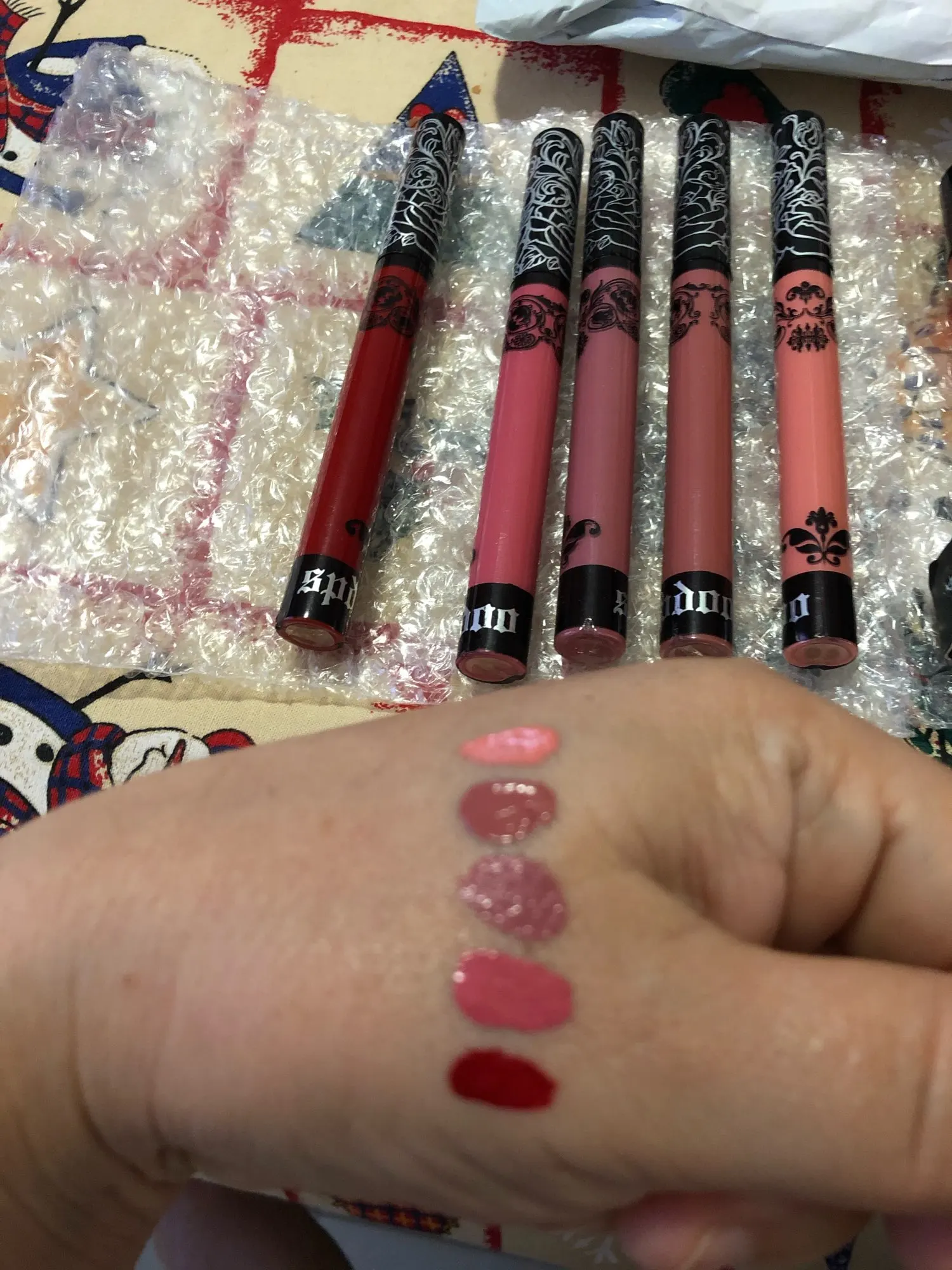 Потребовалось 43 дня, чтобы добраться до моего дома, однако он прибыл в Чили через 2 недели, поэтому это была вина почтового отделения, а не продавца... В конце концов, пахнет очень вкусно, а цвет красивый. Это старая роза с коричневым субтоном, немного светлее и менее фиолетовым, чем Lust для блондинки Maybelline. Это немного Липко, но это не переносит и не сушит губы. Что-то важное, чтобы повесить, так это то, что изображения помещают помаду бренда DRAGON (известный бренд в Китае), и на самом деле вы получаете марку SPDOO. Я понятия не имею, какой это бренд, но так как они выглядят точно так же, и оба сделаны в Китае, возможно, он приходит из той же фабрики, я не знаю. Anyway, I Recommend.