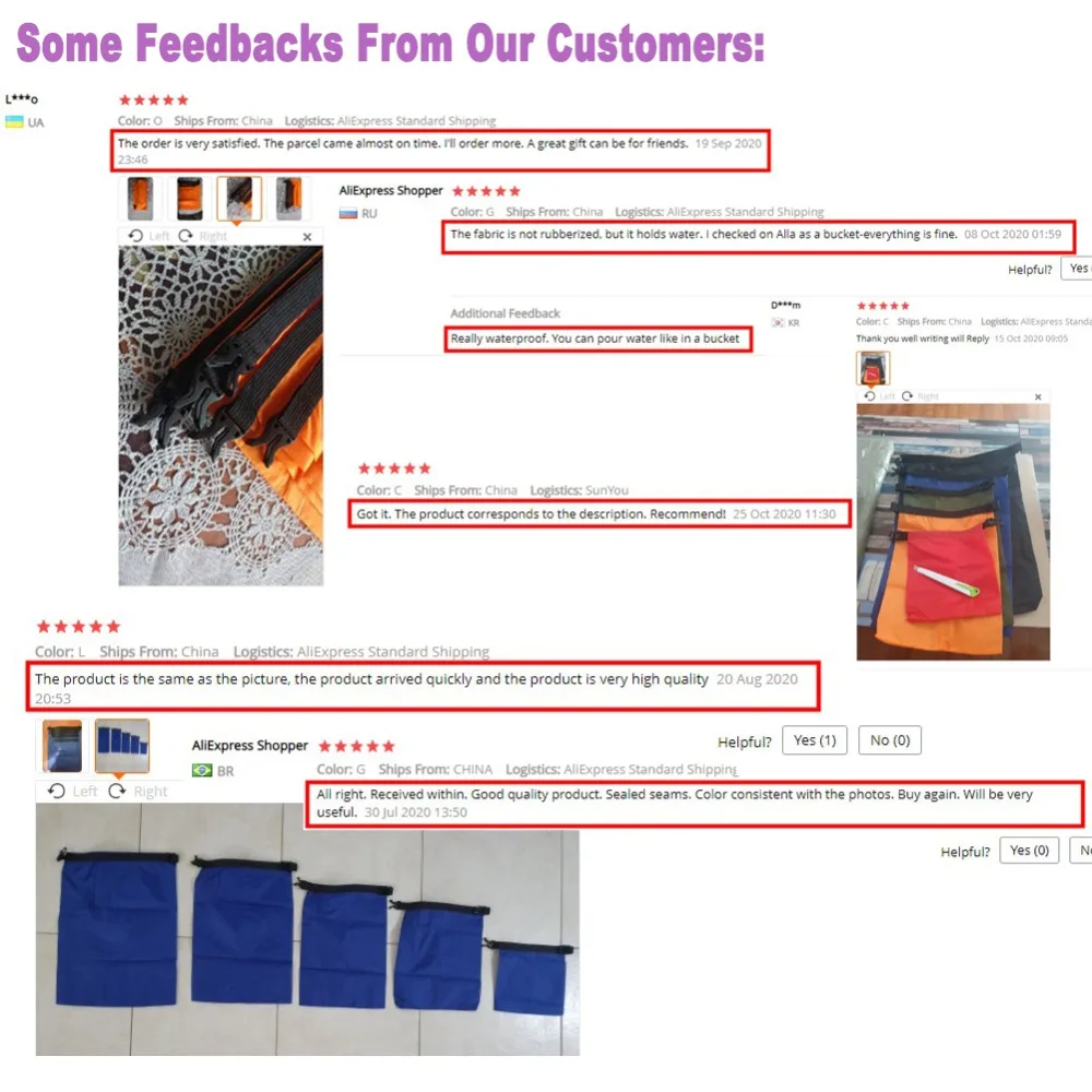Очень хорошие, легкие водонепроницаемые сумки. Как описано! Очень большой, и я использую их для бассейна. Они делают идеальную работу, чтобы сохранить мою одежду сухой, и мое плавательное снаряжение отделено от остального.