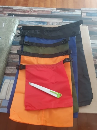 зеказывал 2 комплекта, синий и зеленый, сама ткань вроде норм, карабины ко "взгляду" вроде тоже устойчивы, швы приклеены, мешки реально пока герметичны...а вот сами швы - это китайская техника "ПЬЯНЫЙ МАСТЕР", смотри фото.... поглядим сколько прослужат, через две недели стартуем в поход на 10 дней, где все эти мешки задействованы будут, глянем, если не напишу доп сообщение в течении месяца, мешки выдержали....))) п.с. зеленый воняет больше, чем синий!!!!))))