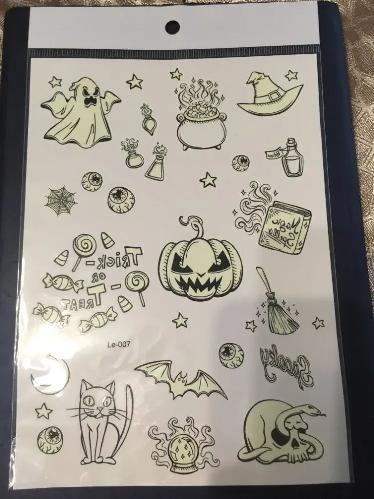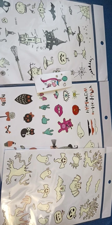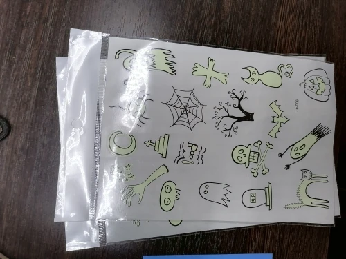 Хорошие татуировки, поставляются в плотном пакете. В Московскую область доставлено за 3 недели. В темноте светятся.