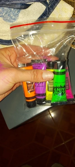 Действительно очень маленькие тюбики краски для тела, которые видны в черном... Конечно, благодаря синему свету, как на дискотеке, потому что ночью не блестит... Действительно маленький! Чтобы увидеть в вечернее время, если синий свет, если он работает... На данный момент covid закрывает места для вечеринок! Быстрая доставка и хорошая упаковка. Обратите внимание на 5/10, потому что это налагает, чтобы проверить на данный момент... Легко удаляет, очищая.