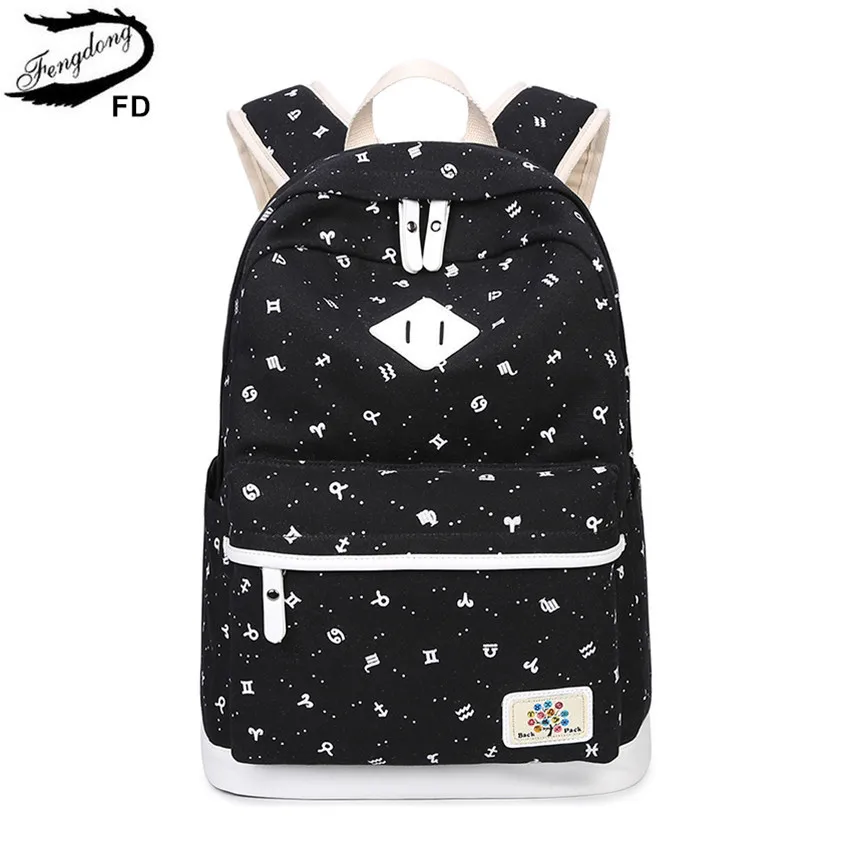 Детский рюкзак FengDong, черный, с принтом, школьные сумки для девочек, дорожный рюкзак для ноутбука, Детская компьютерная сумка, Книжная сумка для девочек