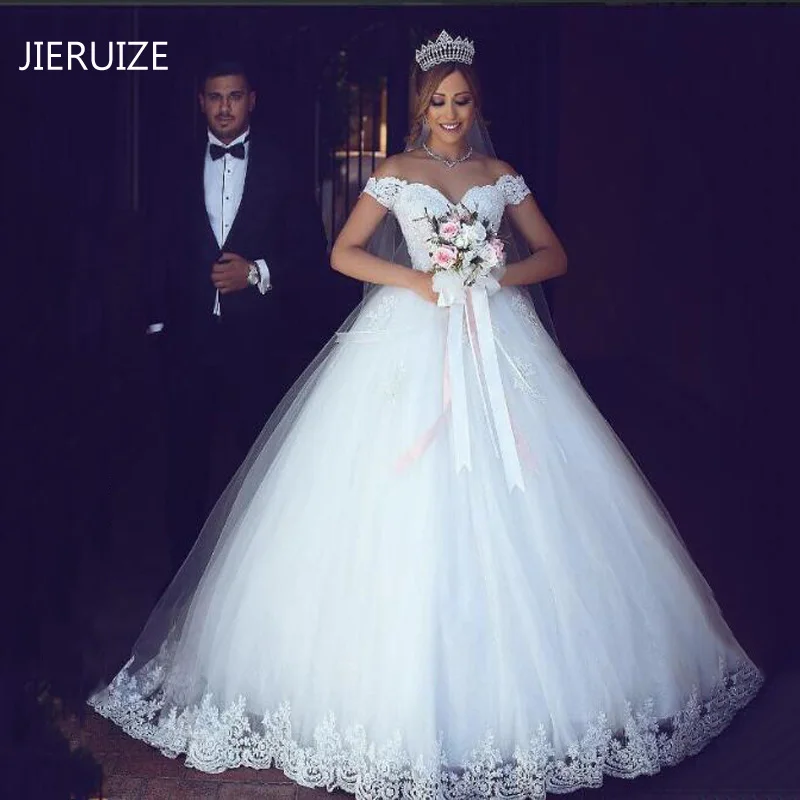 Белое Кружевное бальное платье JIERUIZE, дешевые свадебные платья с открытыми плечами и короткими рукавами, свадебные платья, свадебные платья
