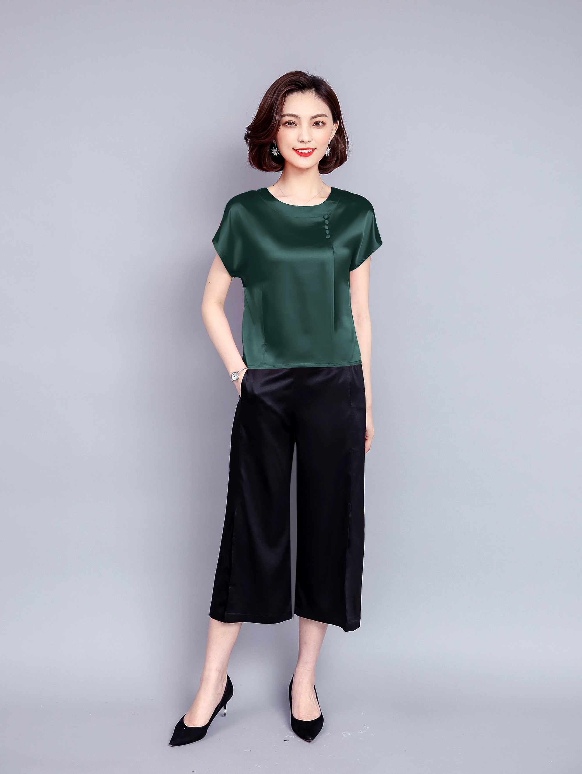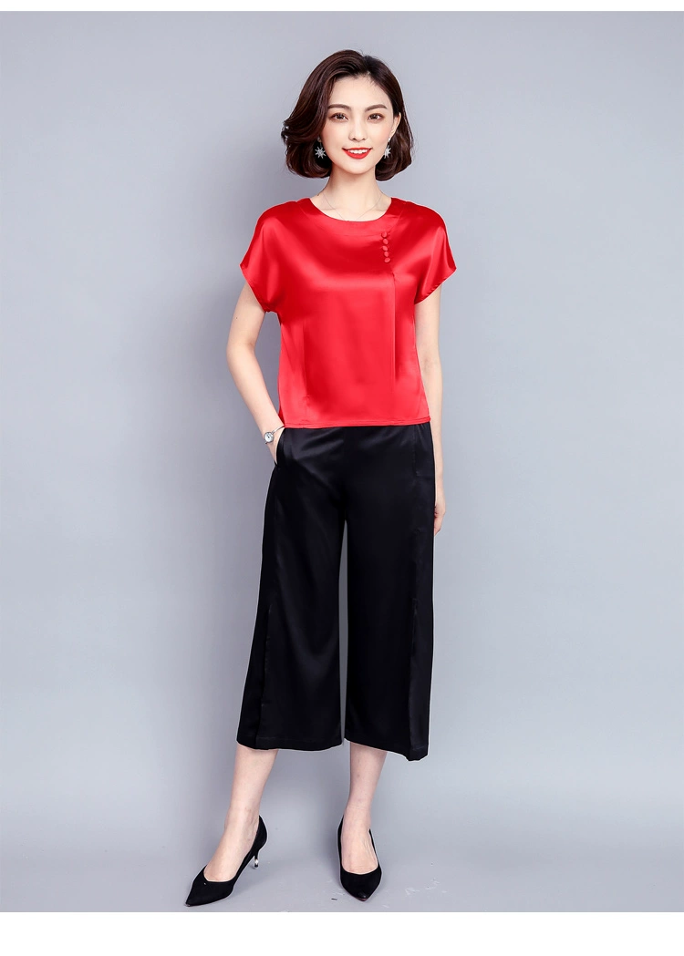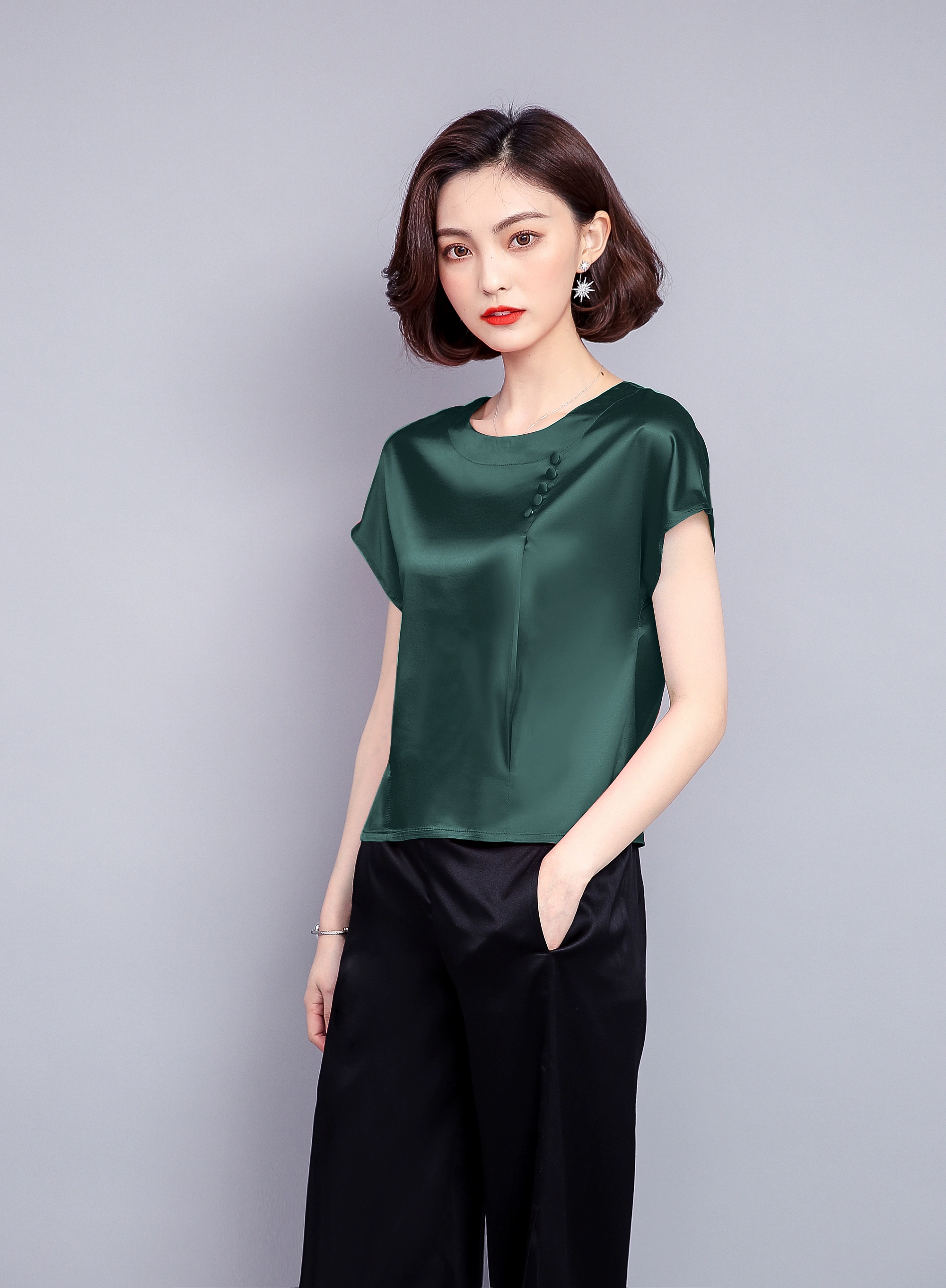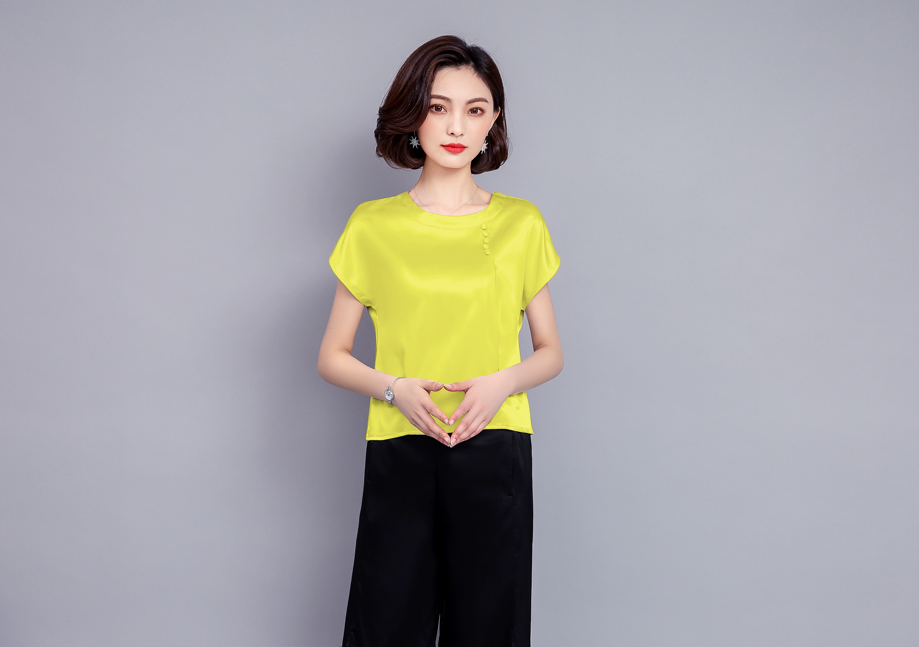 2018 Новая модная летняя одежда женские топы однотонные свободные шелковые блузки с короткими рукавамивырезом рубашки Повседневные женские с круглым блузки 0425 40
