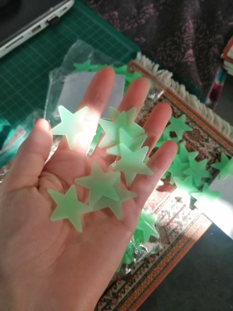 The stars barely glow at all, despite spending a lot of time in a very bright room - much worse than other fluorescent products I have ordered on AliExpress.