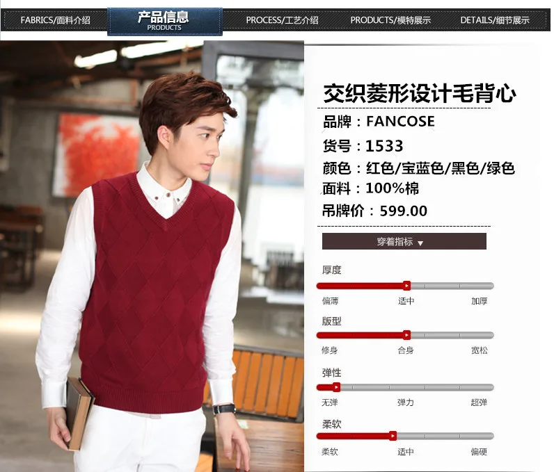 Мужской однотонный трикотажный жилет из 100% хлопка, с V-образным вырезом