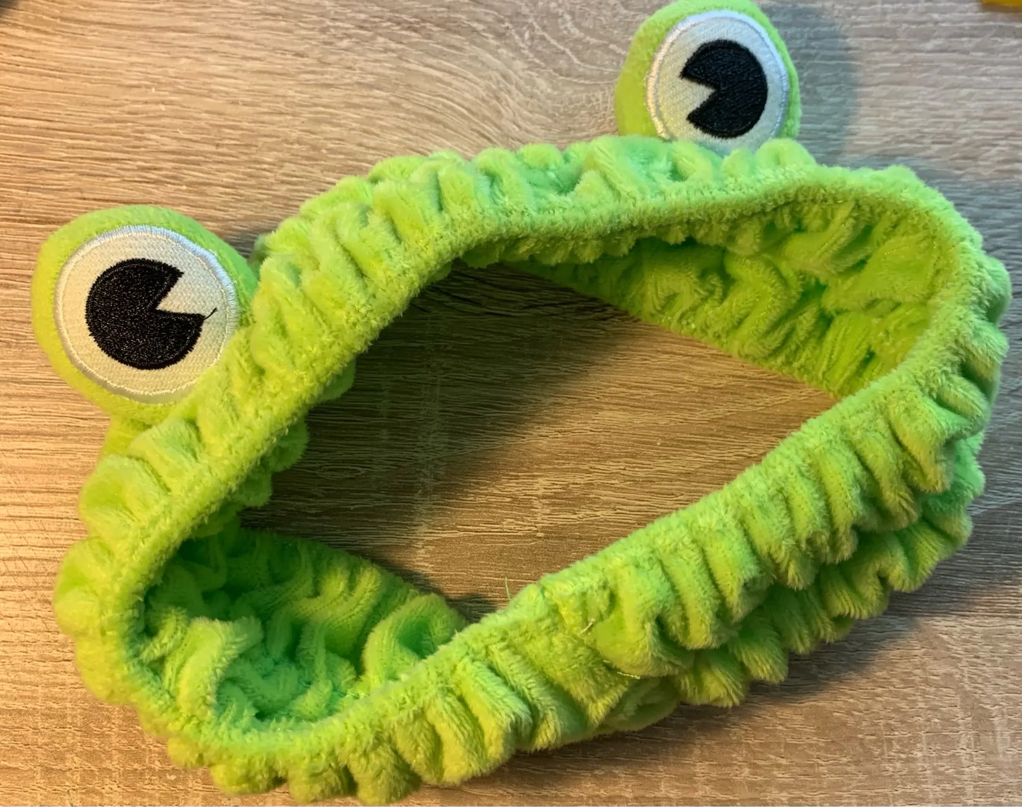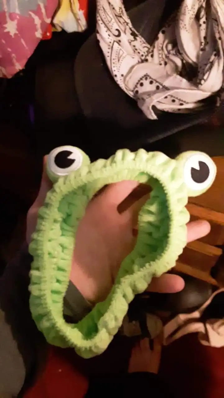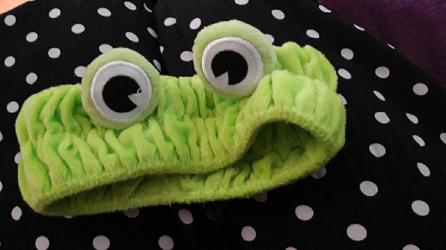 В целом очень даже симпатичная повязка. Хочу поделится некоторыми деталями, которые могут интересовать покупателя. Сама повязка довольно плотно сидит на голове, не слезает, но если у вас есть пирсинг на ушах, то спустя минут 30 может стать немного некомфортно, но лягушачья повязка радует намного сильнее. Сами «глаза» приклеены чем-то, не пришиты, но вроде крепко сидят. По мне стоит того, мелочь, а столько радости.