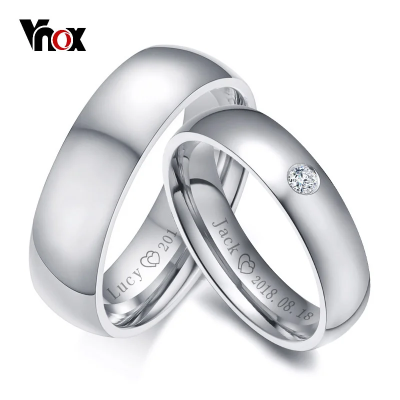 Обручальные кольца для мужчин и женщин, с датой и именем на заказ