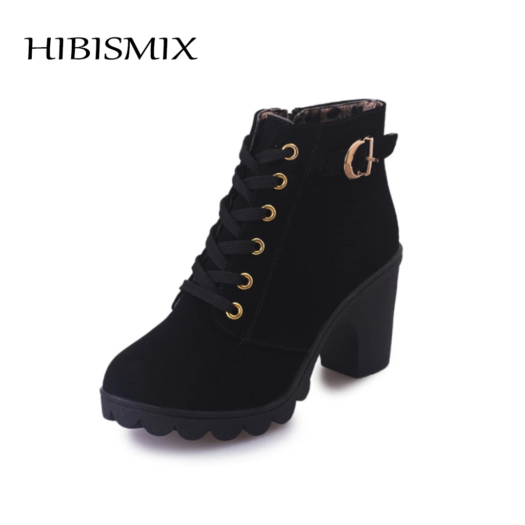 HIBISMIX женские ботильоны на высоком каблуке 2021 женские осенне-зимние ботинки на платформе со шнуровкой и молнией модные ботинки из искусственной кожи 1133