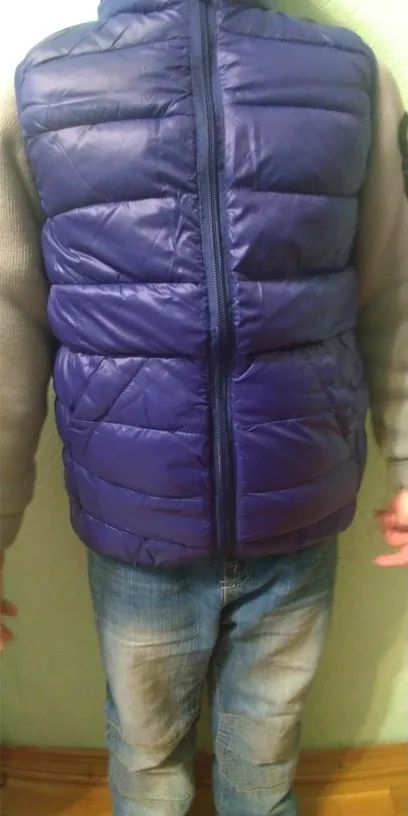 Жилет очень хороший. Запаха нет. Брала на мальчика ростом 134 см, немного великоват, но к весне будет в как раз. Продавца рекомендую.