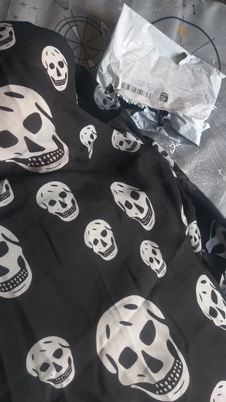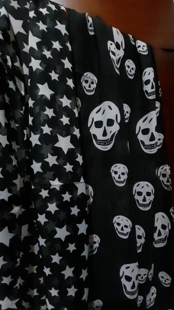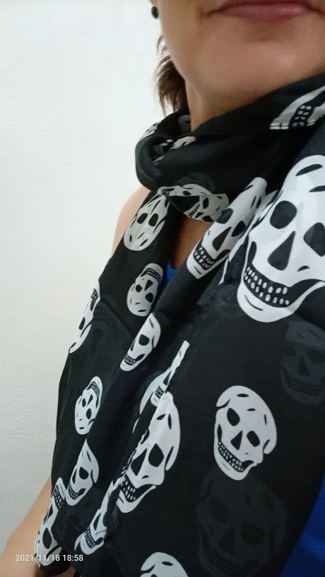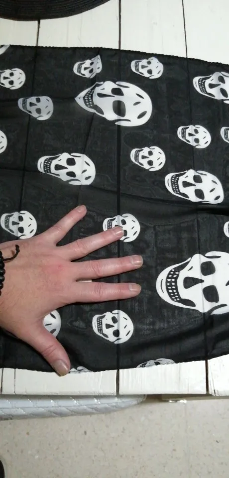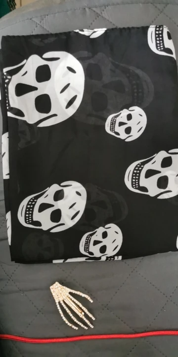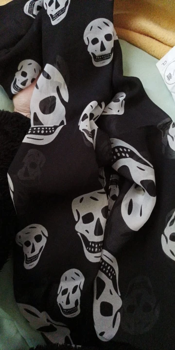 Мне нравится этот шарф! Мягкий и шелковистый материал, тонкий, но это хорошо для модного шарфа. Это идеально подходит для Хэллоуина!