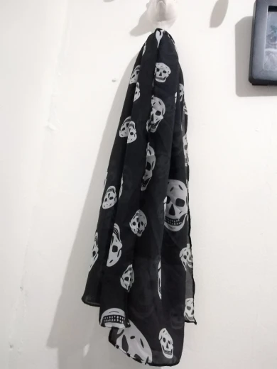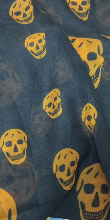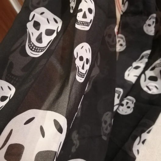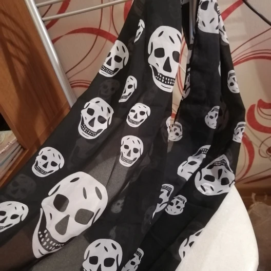 отличная шаль, может служить парео на пляже. Грустила, что потеряла такую с белыми черепами, и вот случайно нашла на сайте