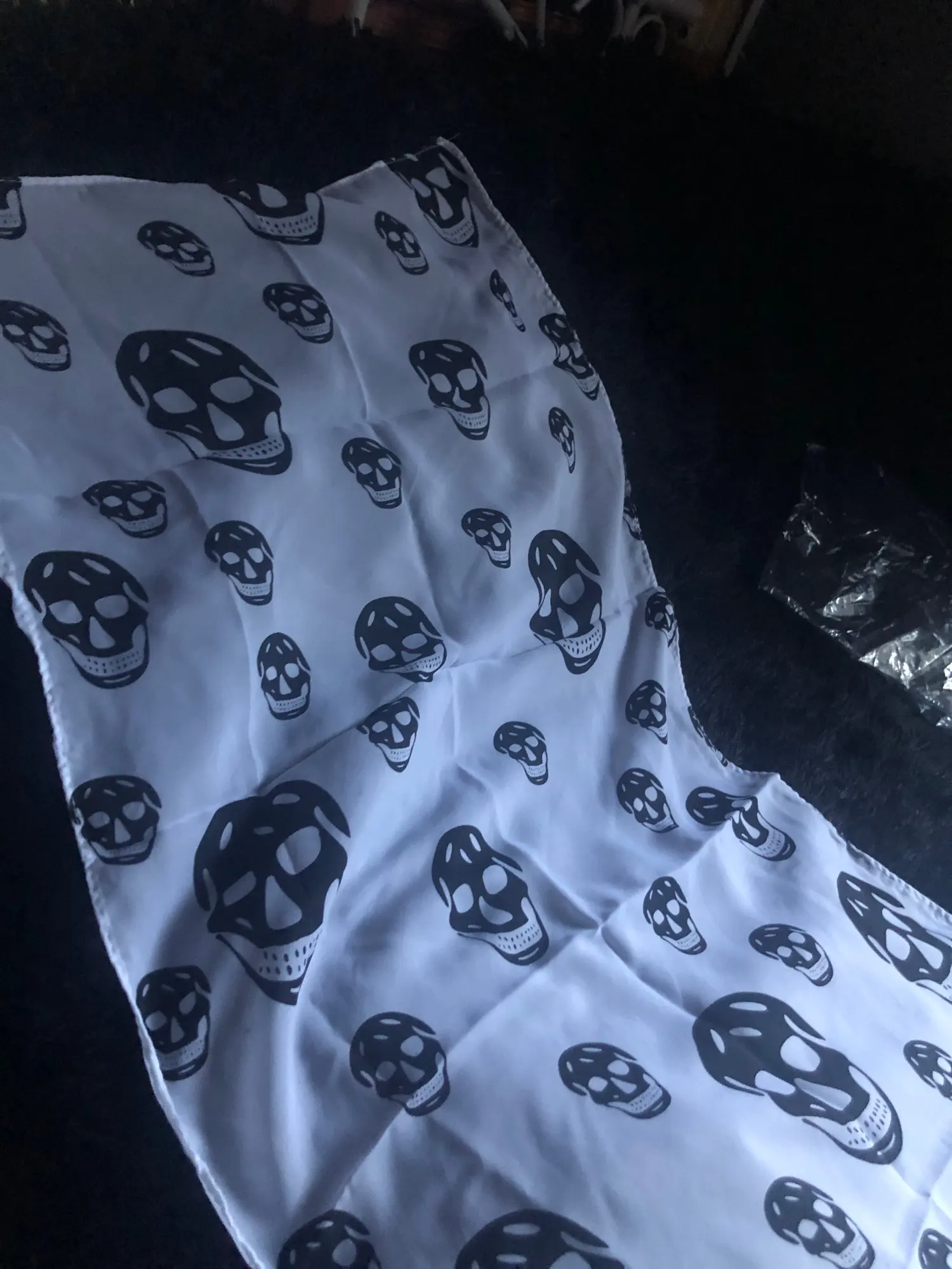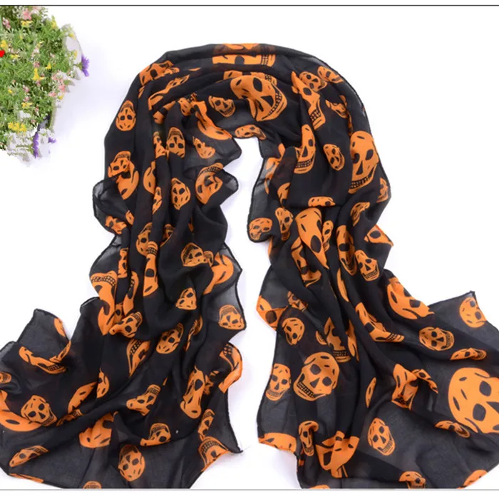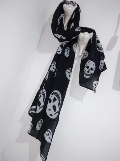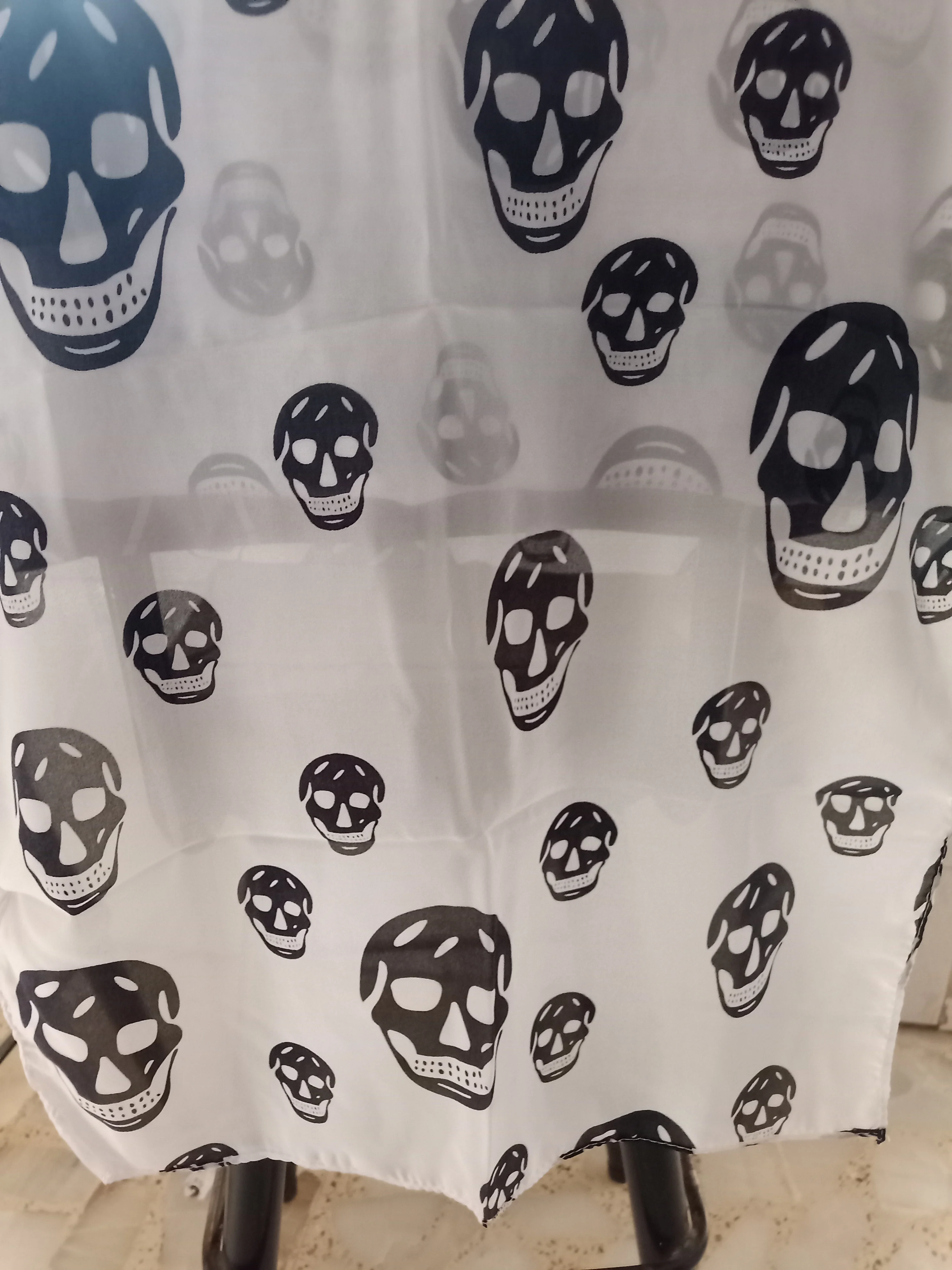 Шаль шелковая шифоновая, с принтом черепа, 50*150 см