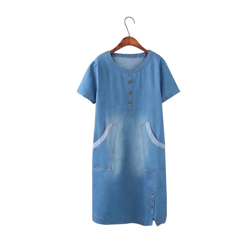 Женское джинсовое платье, повседневное офисное платье с круглым вырезом, модель размера плюс года на лето и осень