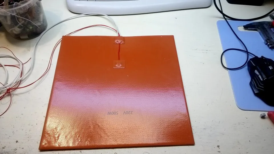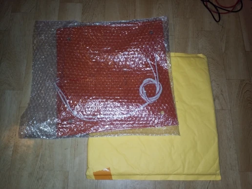 Посылка до Уфы пришла за 2 недели. Сопротивление грелки 65 Ом. Отверстия под винты крепления стола к раме сделаны кривовато, но не критично. Стол размером 310х310 мм нагревается с 25 до 100 градусов меньше, чем за 1 минуту. Подключали через твердотельное реле параллельно нагревателю родного стола (работают совместно) Термистор не подключали, остался родной, от стола